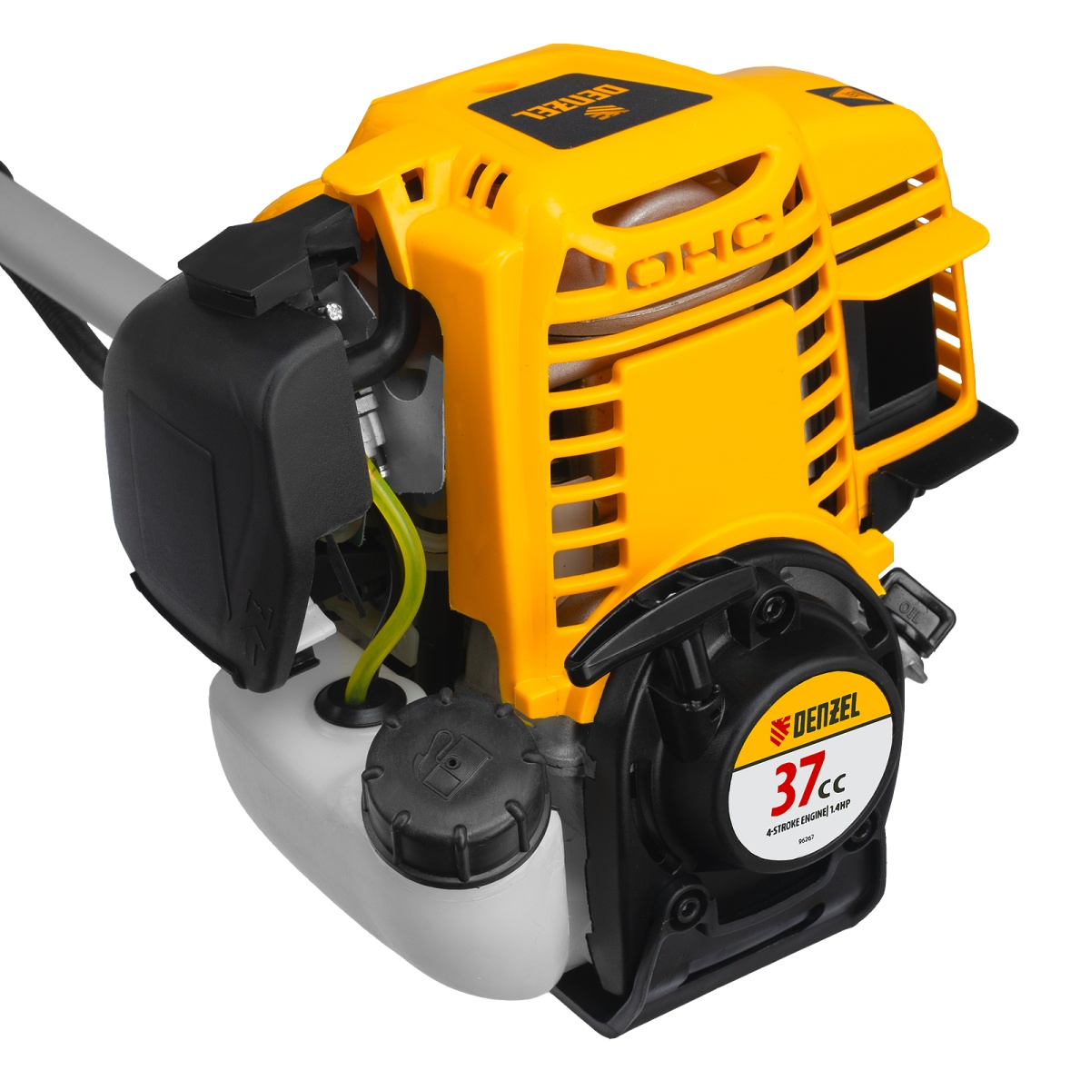 Наличие клапана для сброса давления Триммер бензиновый DTL-37-4T, 4-тактный, 37 см3, неразъемная штанга, состоит из 2 частей Denzel