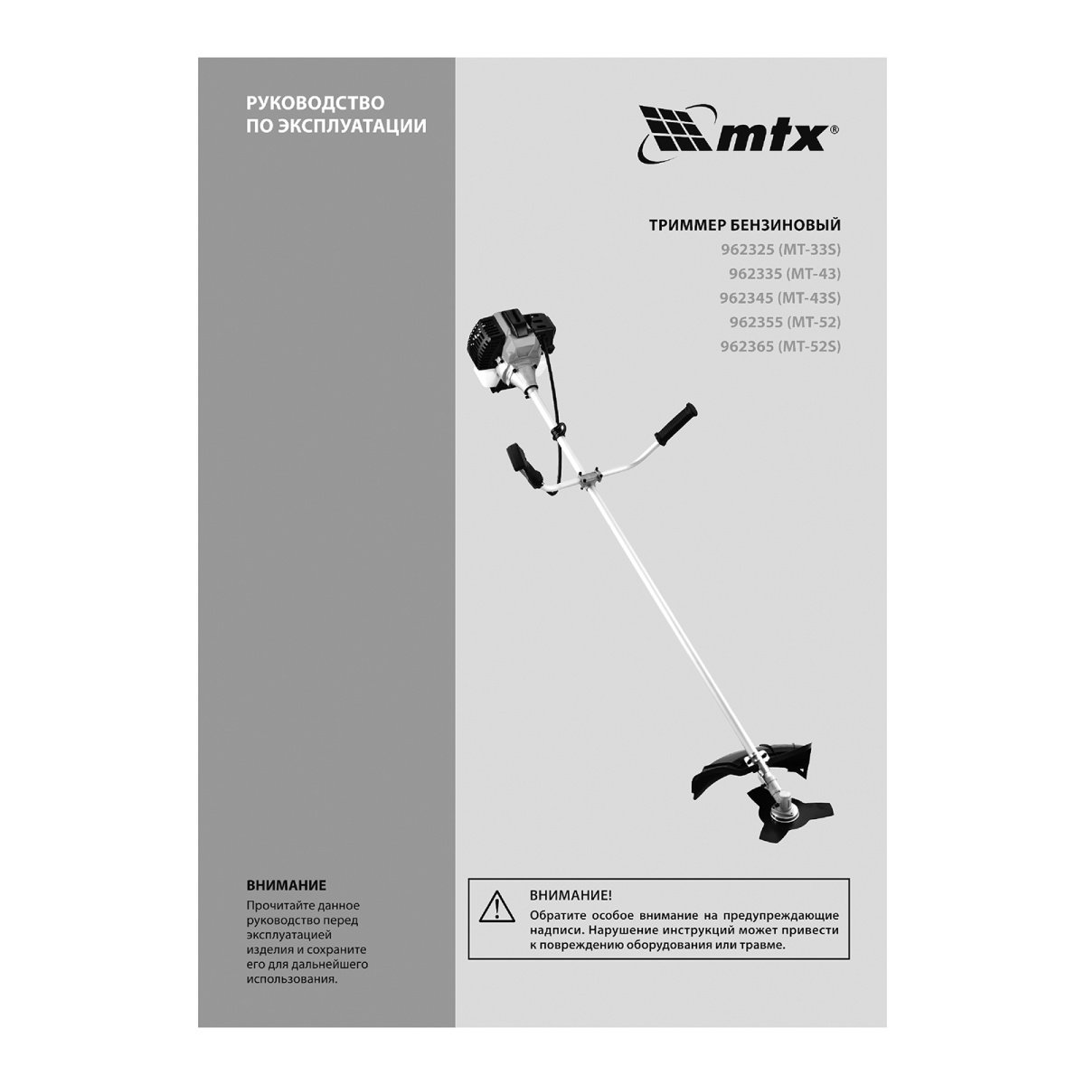 Триммер бензиновый MT-43, 43 см³, неразъемная штанга, состоит из 2 частей MTX