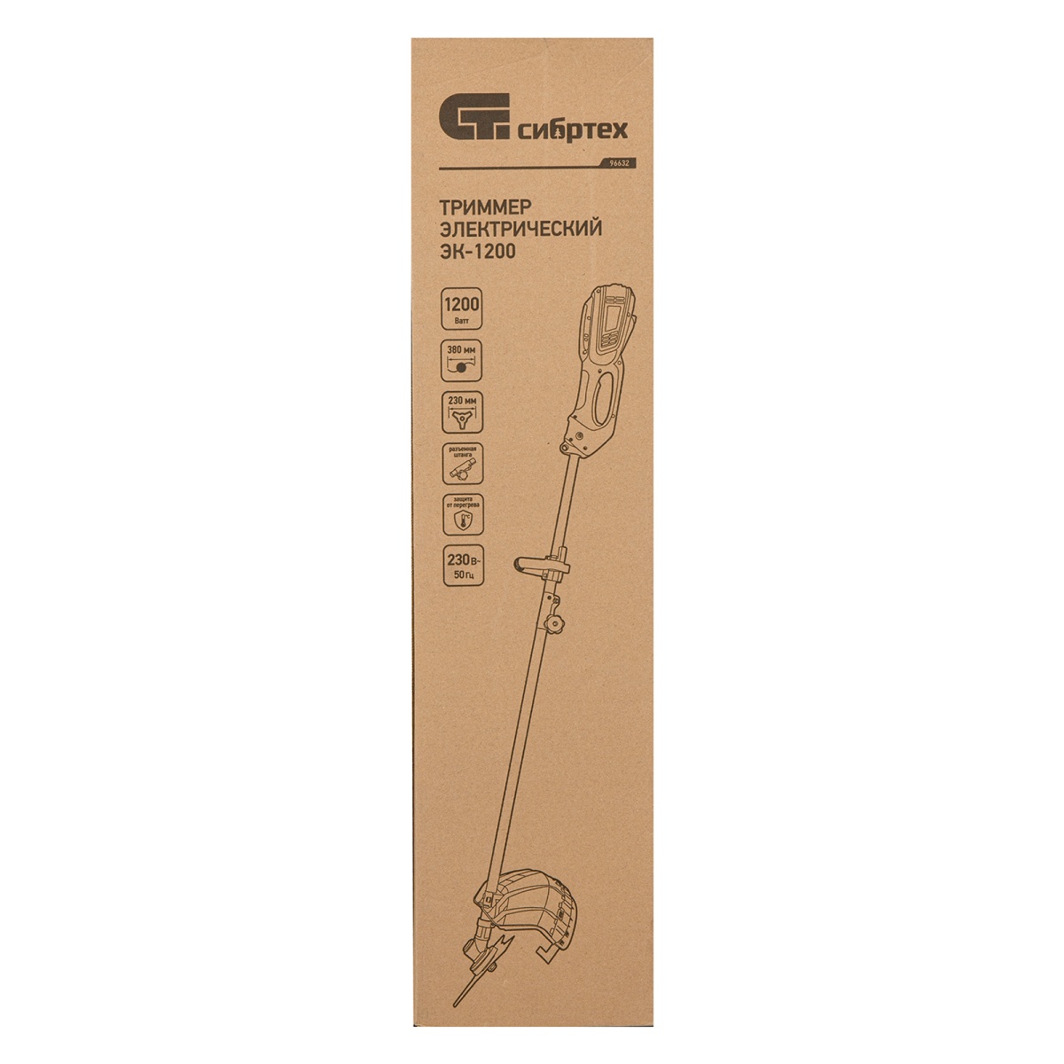 Купить Триммер электрический ЭК-1200, 1200 Вт, 380 мм, разборная штанга, катушка, диск Сибртех V7286 по лучшей цене с доставкой - интернет магазин №1 в России