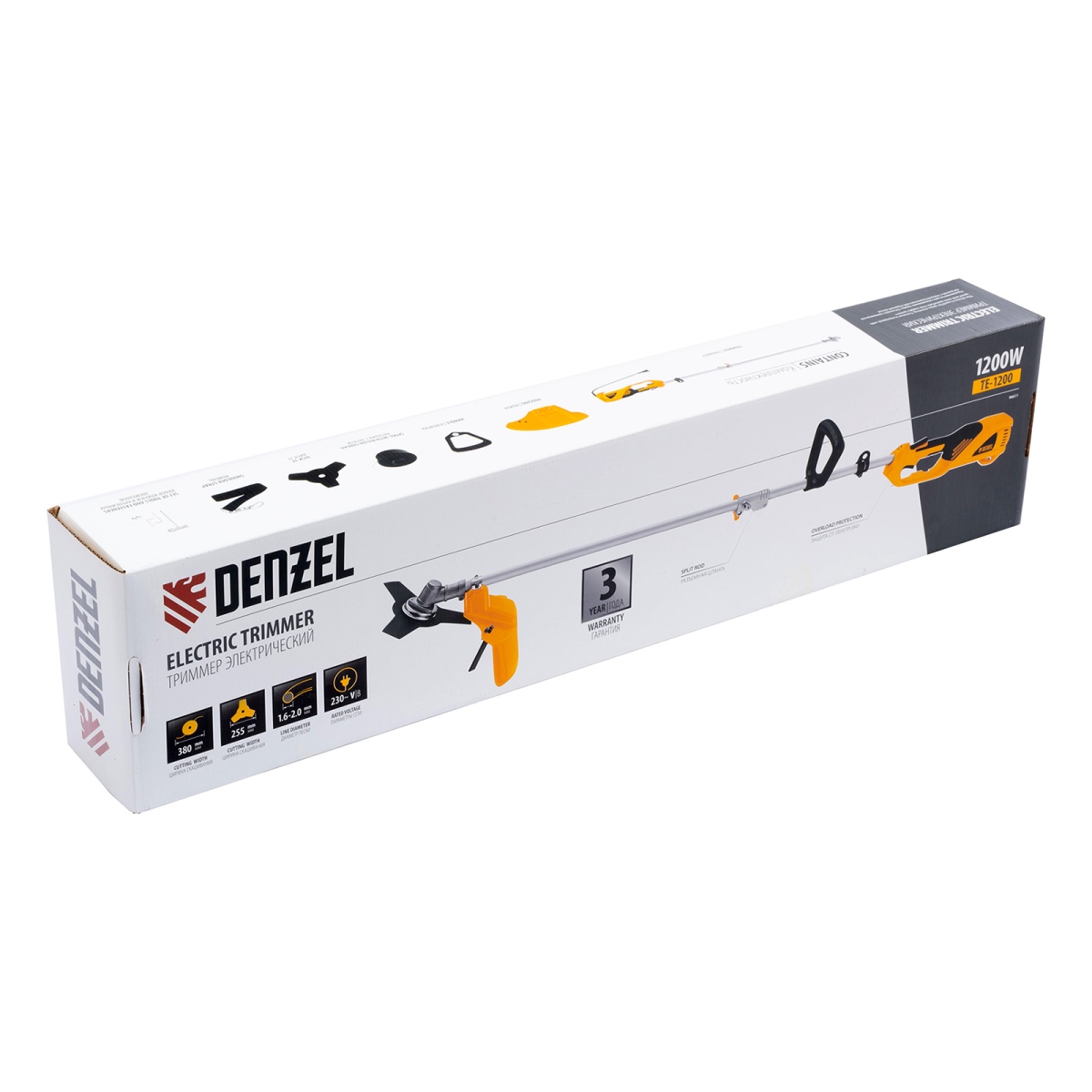 Триммер электрический TE-1200, 1200 Вт, 380 мм, катушка + диск, разборная штанга Denzel