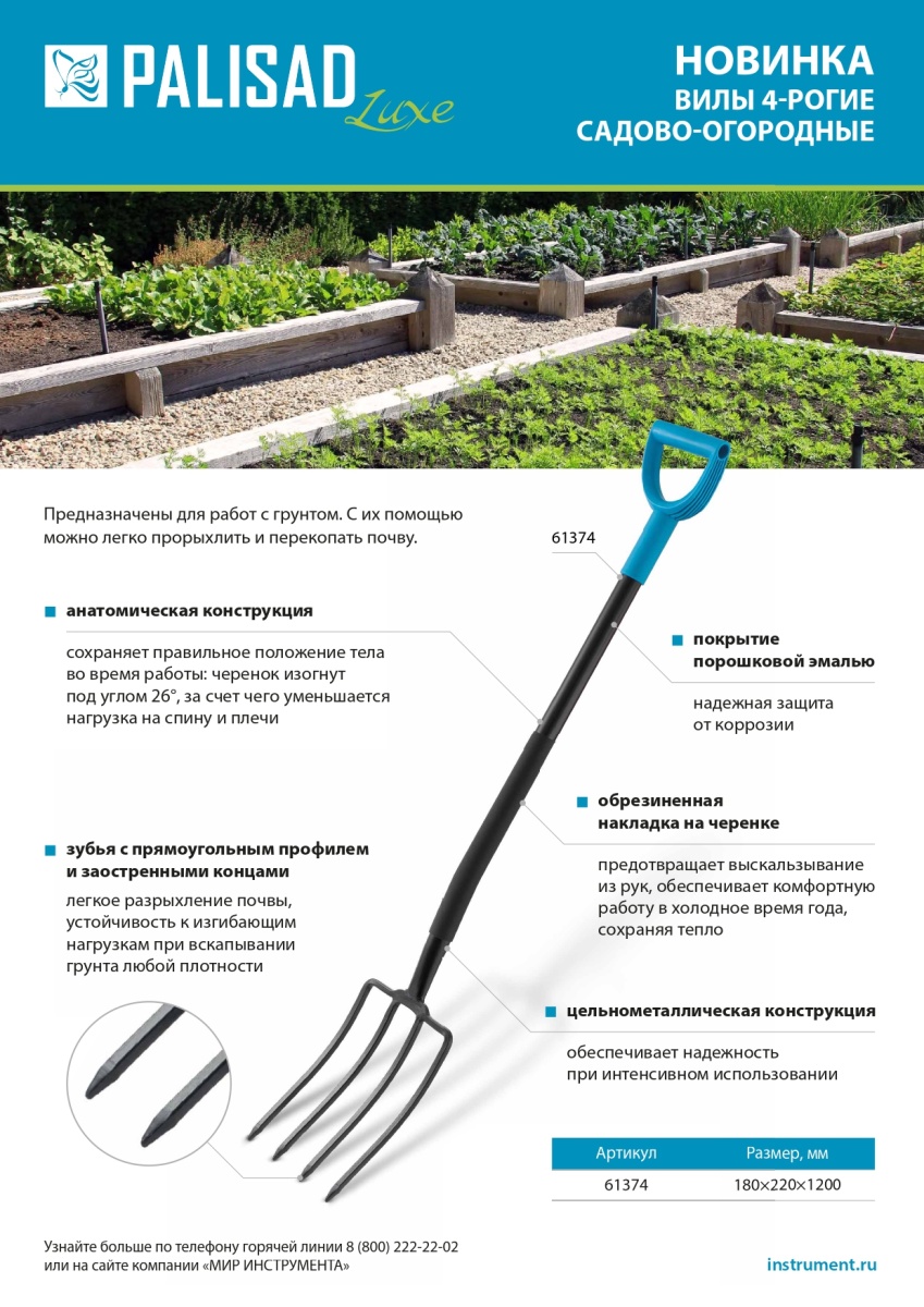 Купить Вилы 4-х рогие, садово-огородные, 180х280х1200 мм, цельнометаллические, кованые, LUXE Palisad V1229 по лучшей цене с доставкой - интернет магазин №1 в России