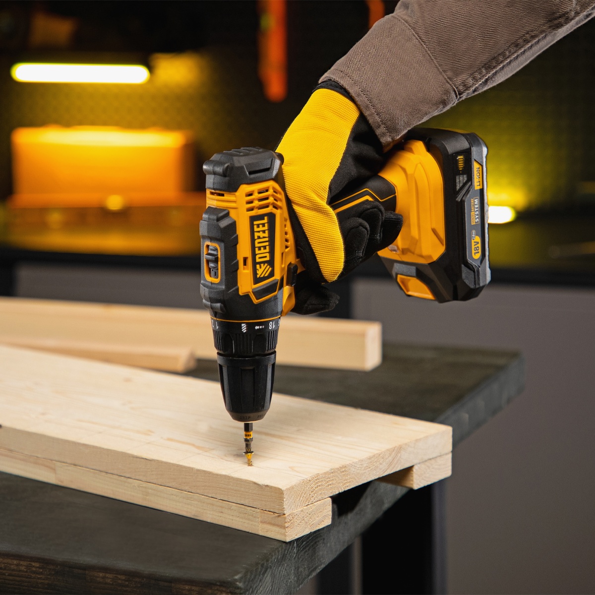 Дрель-шуруповерт аккумуляторная CDL-18-0, Li-Ion, 18 В Denzel