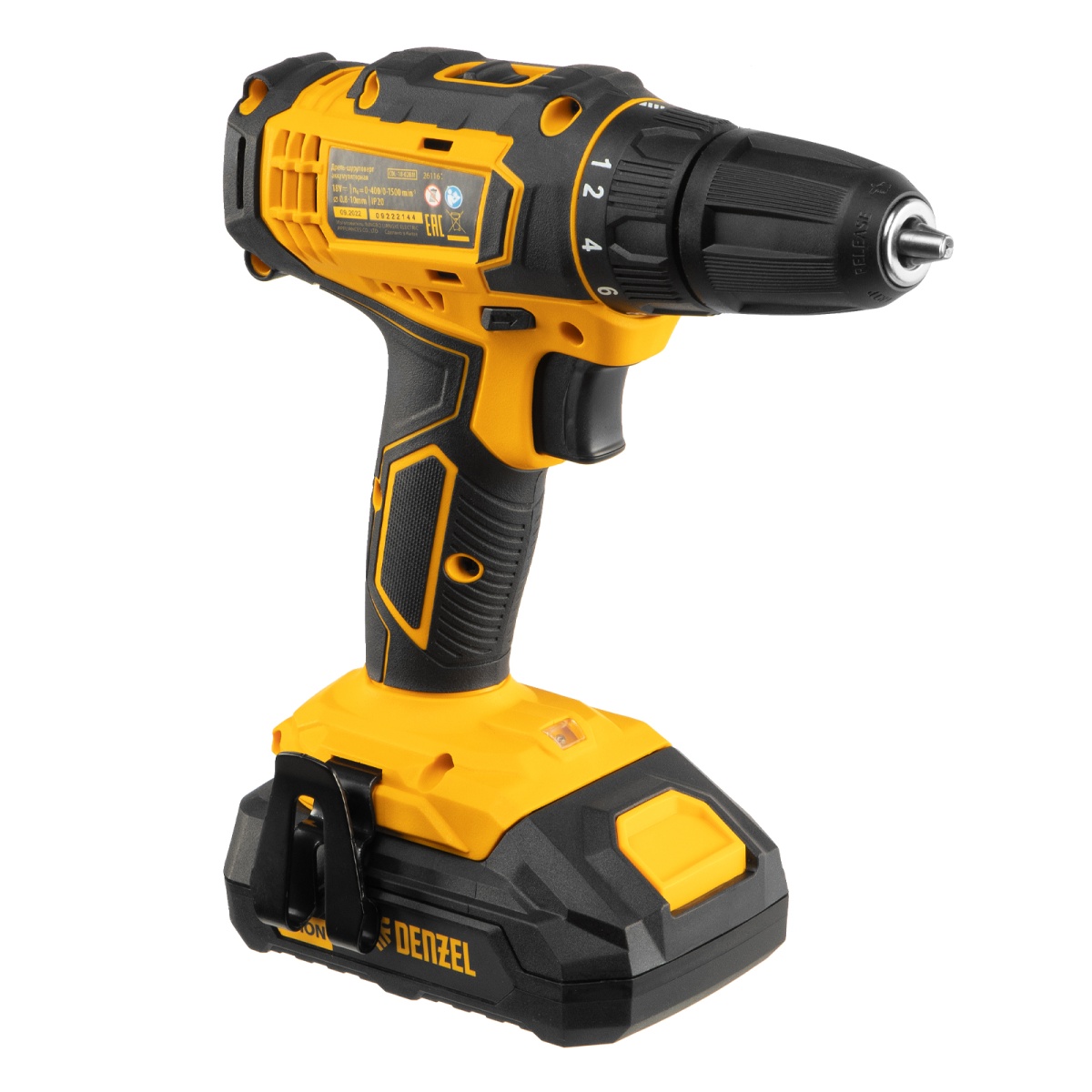 Наличие клапана для сброса давления Дрель-шуруповерт аккумуляторная CDL-18-02BM, Li-Ion, 18 В, 2 аккумулятор Denzel
