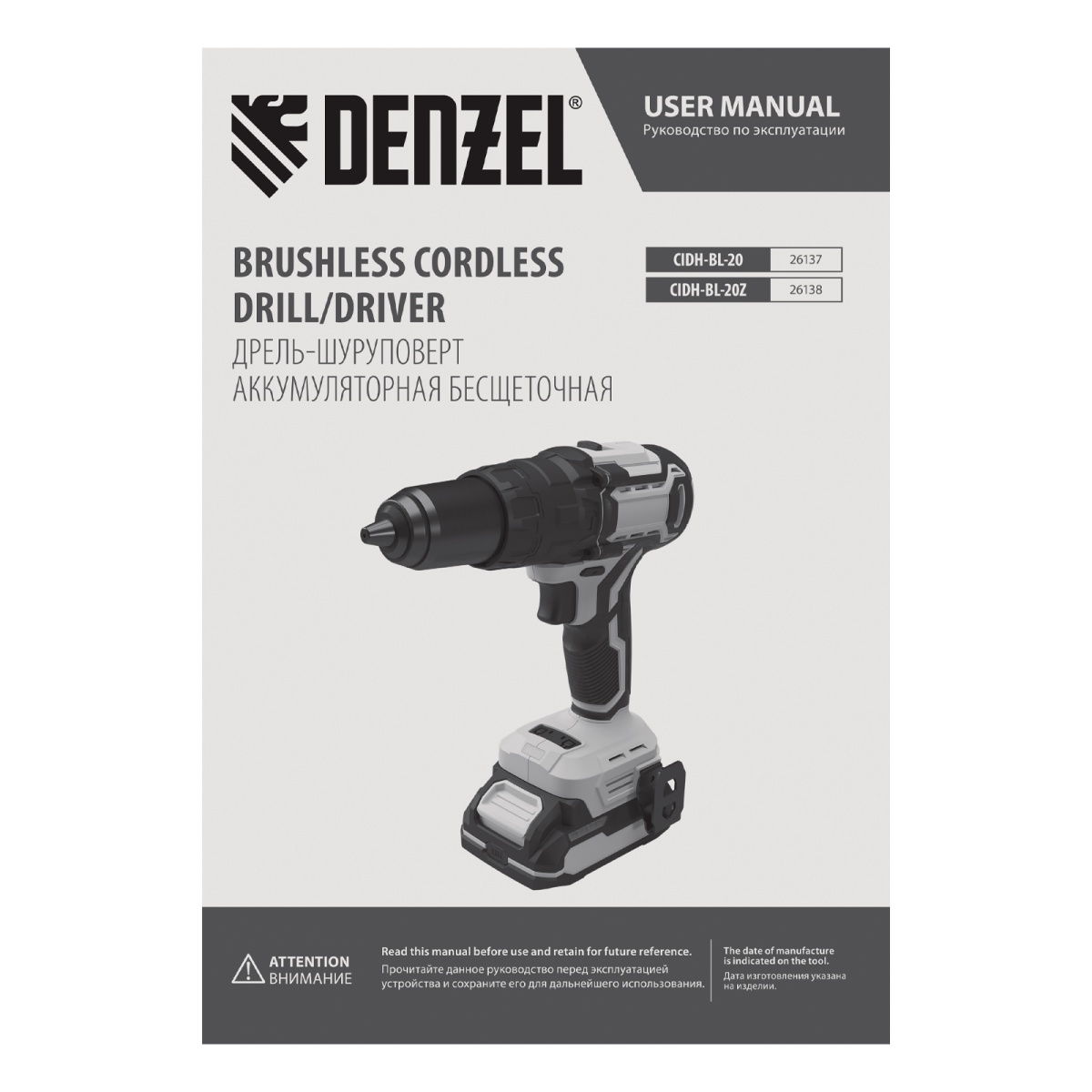 Купить Дрель-шуруповерт аккумуляторная ударная бесщет. CIDH-BL-20, Li-Ion, 20 В// Denzel V1770 по лучшей цене с доставкой - интернет магазин №1 в России