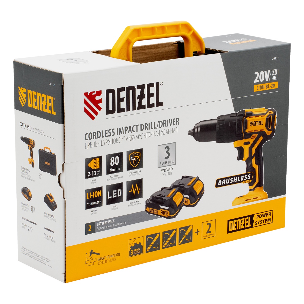 Дрель-шуруповерт аккумуляторная ударная бесщет. CIDH-BL-20, Li-Ion, 20 В// Denzel