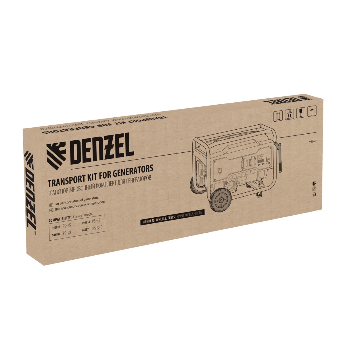 Купить Транспортировочный комплект (колеса и ручки) для генераторов PS-25, PS-28, PS-33, PS-33E Denzel V7223 по лучшей цене с доставкой - интернет магазин №1 в России