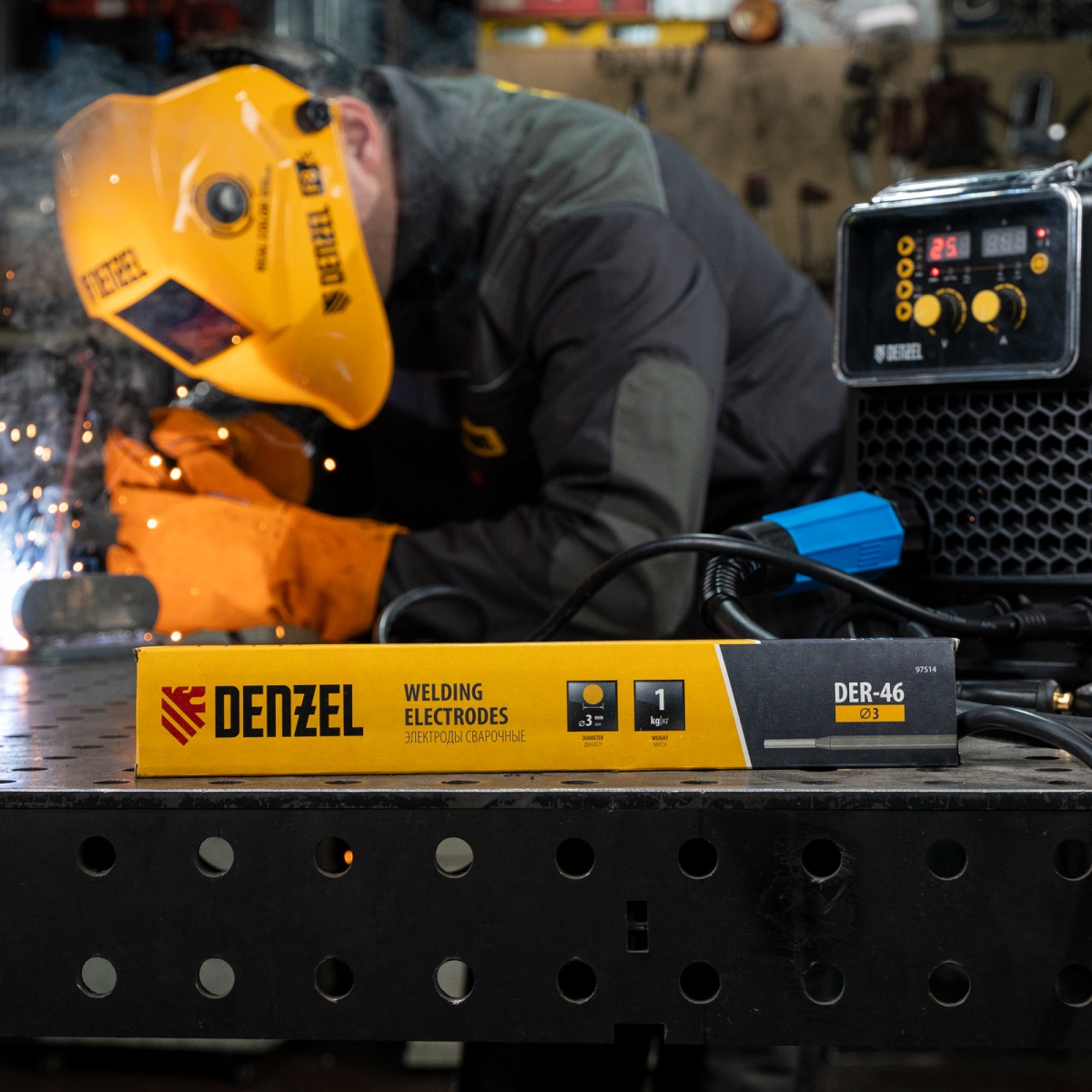 Электроды DER-46, диам. 3 мм, 1 кг, рутиловое покрытие Denzel