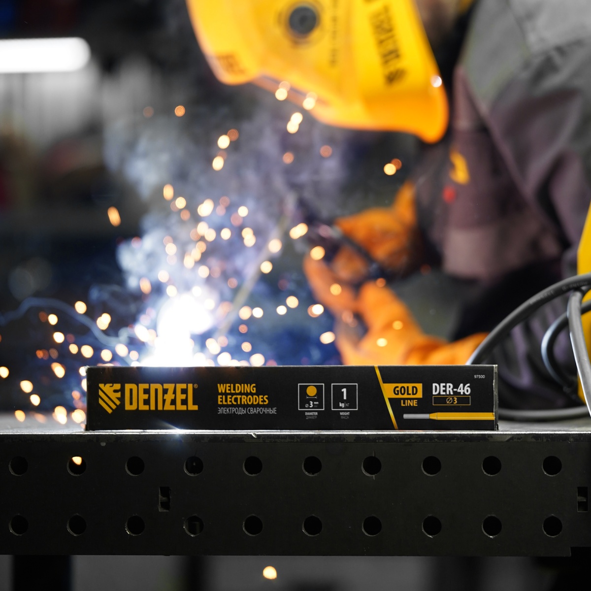 Электроды DER-46 Goldline, диам. 3 мм, 1 кг, рутил-целлюлозное покрытие Denzel