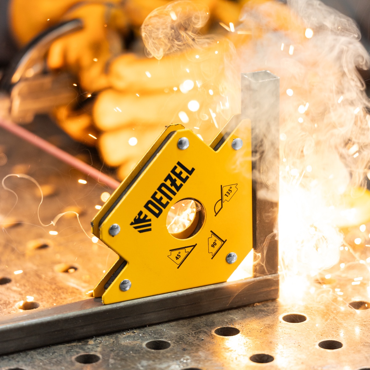 Наличие клапана для сброса давления Фиксатор магнитный для сварочных работ, усилие 50 Lb Denzel