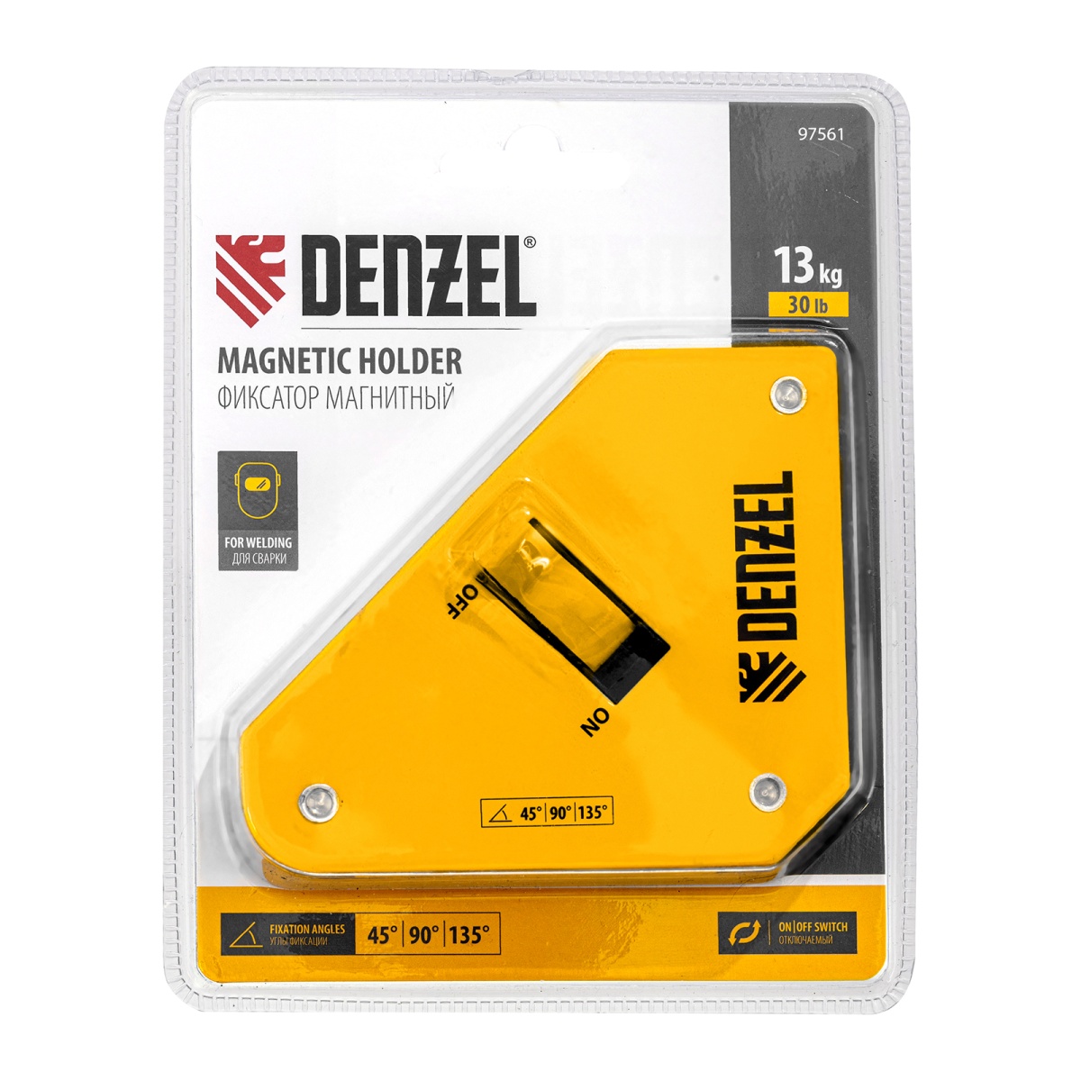 Купить Фиксатор магнитный отключаемый для сварочных работ усилие 30 LB, 45х90 град. Denzel V7515 по лучшей цене с доставкой - интернет магазин №1 в России