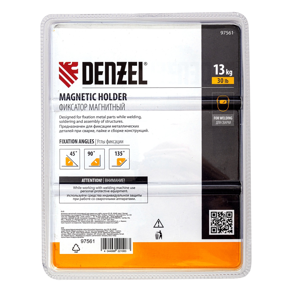 Фиксатор магнитный отключаемый для сварочных работ усилие 30 LB, 45х90 град. Denzel
