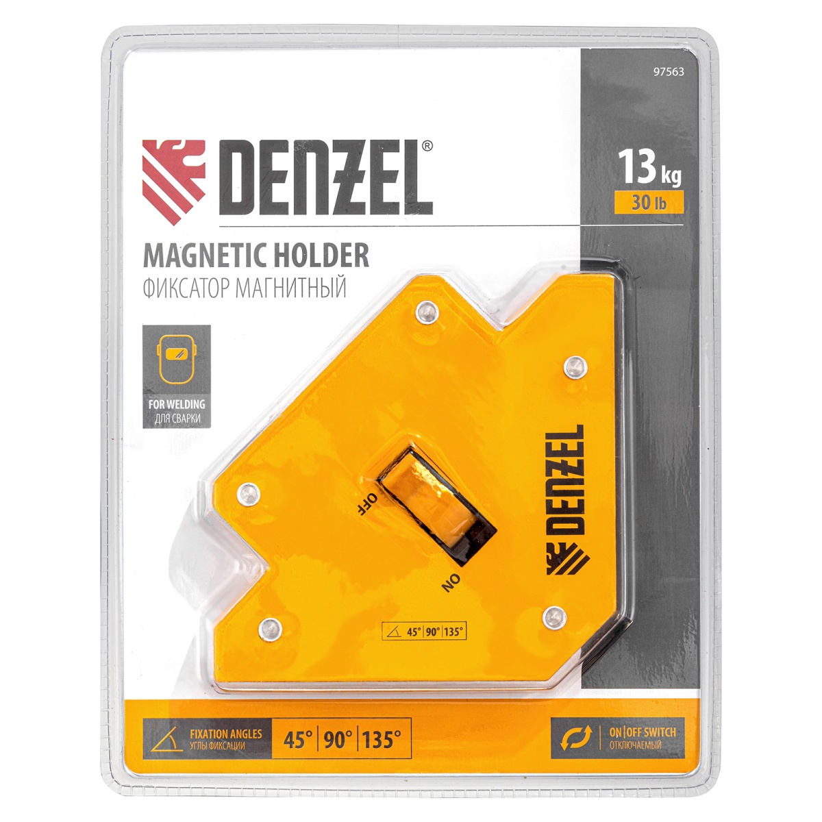 Купить Фиксатор магнитный отключаемый для сварочных работ усилие 30 LB, 45х90х135 град. Denzel V7516 по лучшей цене с доставкой - интернет магазин №1 в России