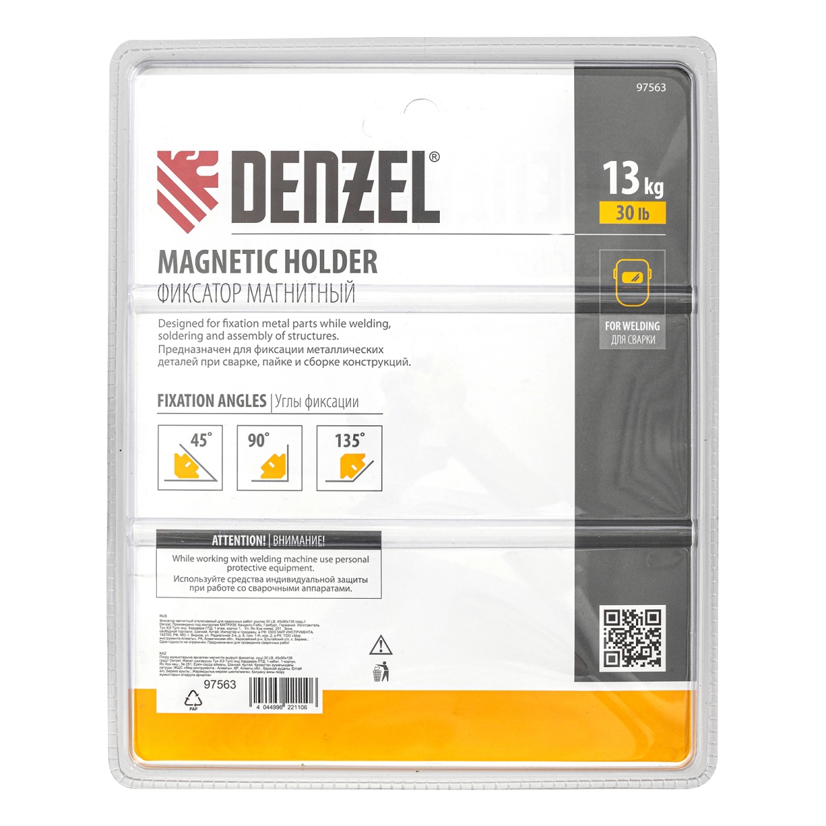 Фиксатор магнитный отключаемый для сварочных работ усилие 30 LB, 45х90х135 град. Denzel