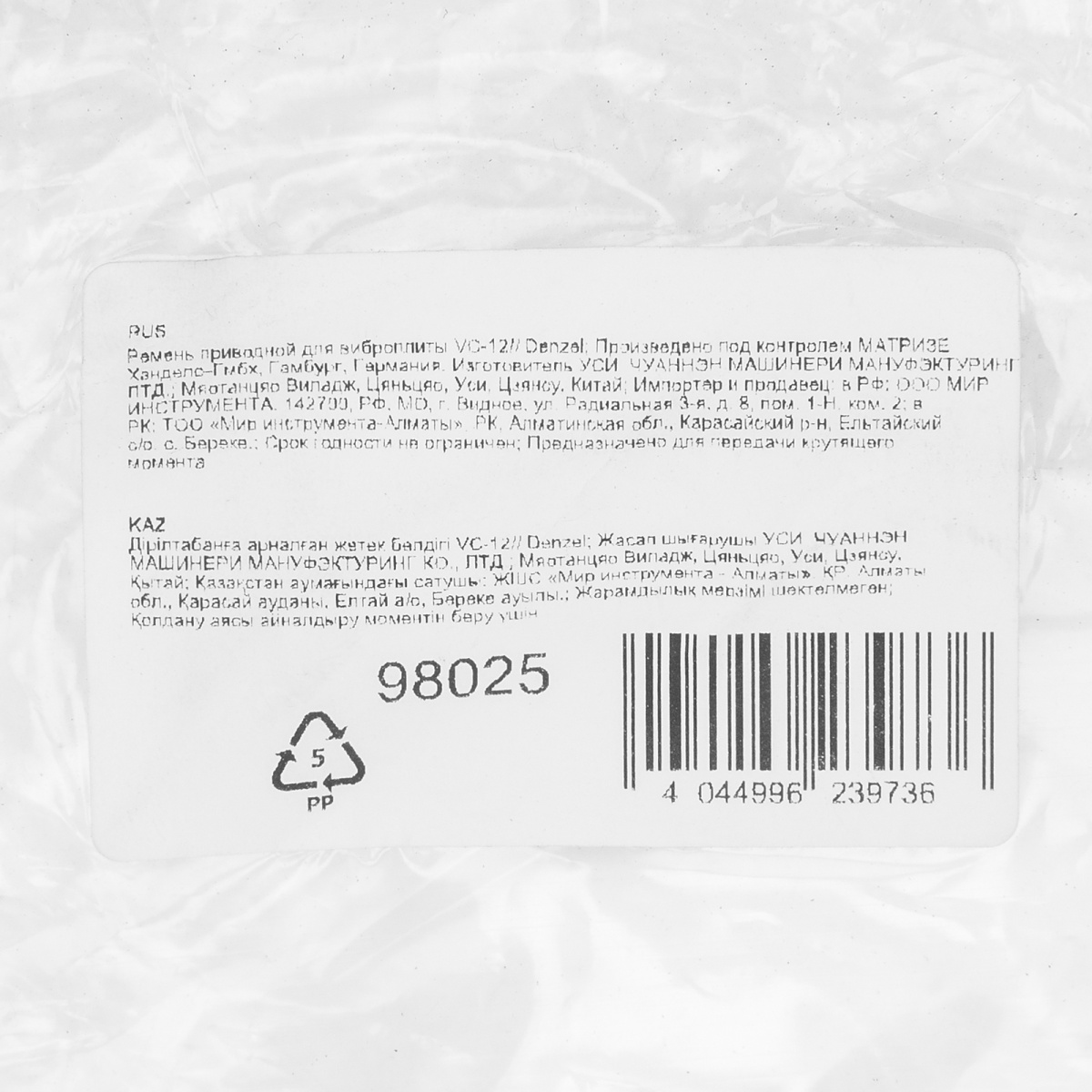 Купить Ремень приводной для виброплиты VC-12 Denzel V5949 по лучшей цене с доставкой - интернет магазин №1 в России