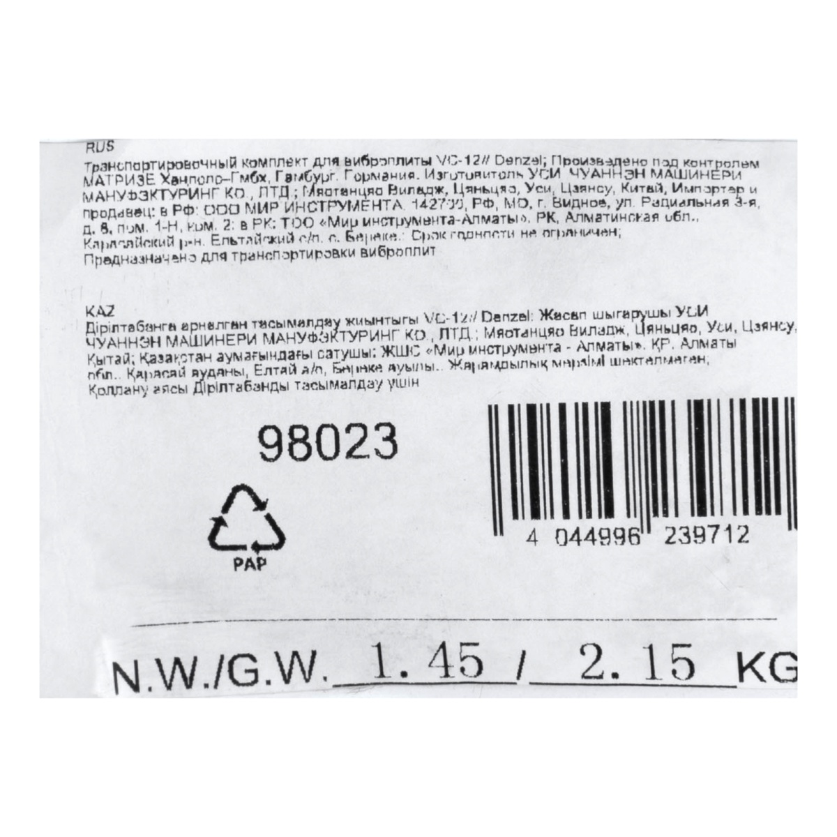 Транспортировочный комплект для виброплиты VC-12 Denzel