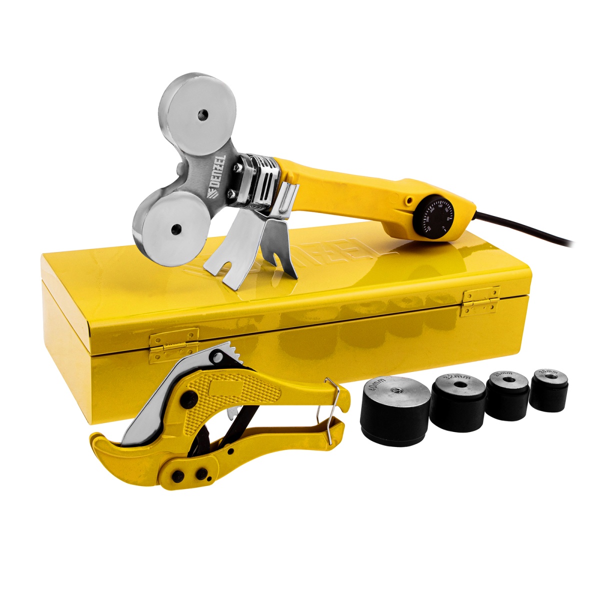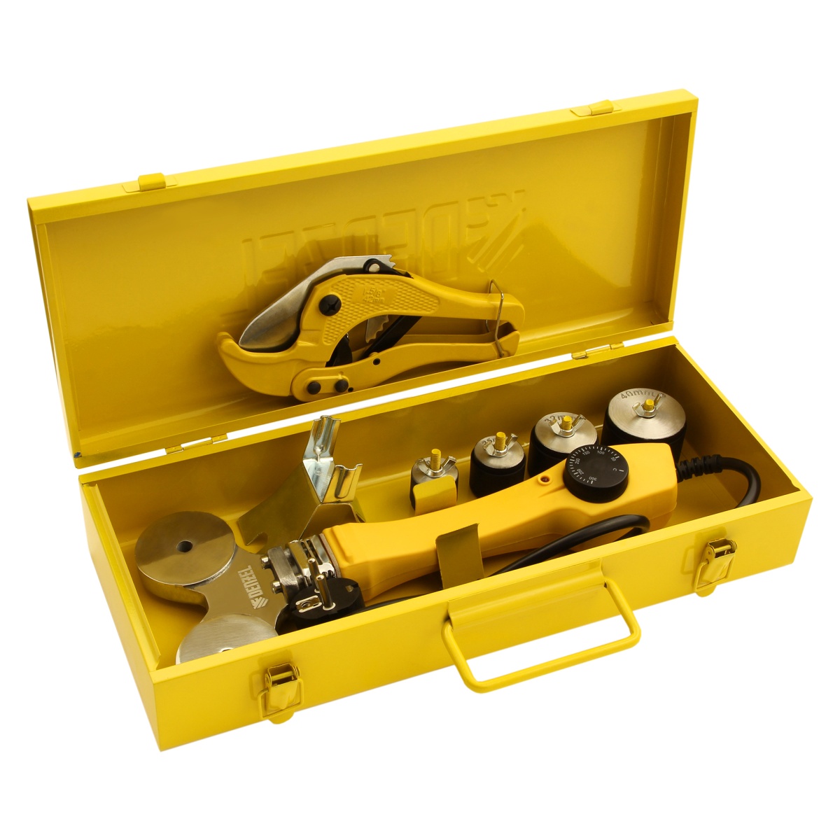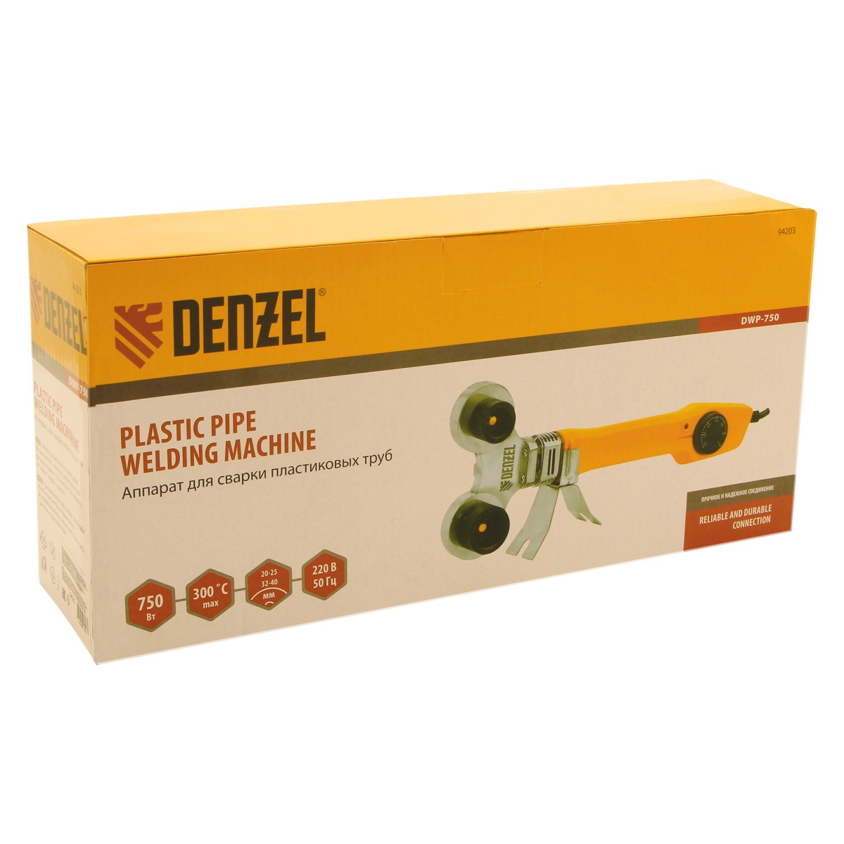 Купить Аппарат для сварки пластиковых труб DWP-750, 750 Вт, 0-300 град, 4 насадки, 20-40 мм Denzel V456 по лучшей цене с доставкой - интернет магазин №1 в России