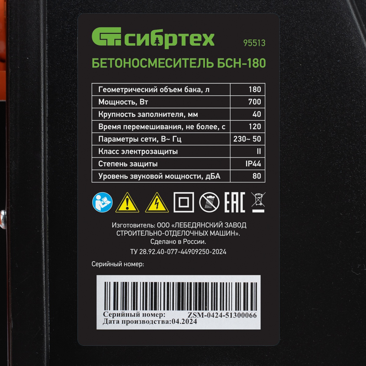Купить Бетоносмеситель БСН-180, мощность 700 Вт Сибртех V524 по лучшей цене с доставкой - интернет магазин №1 в России
