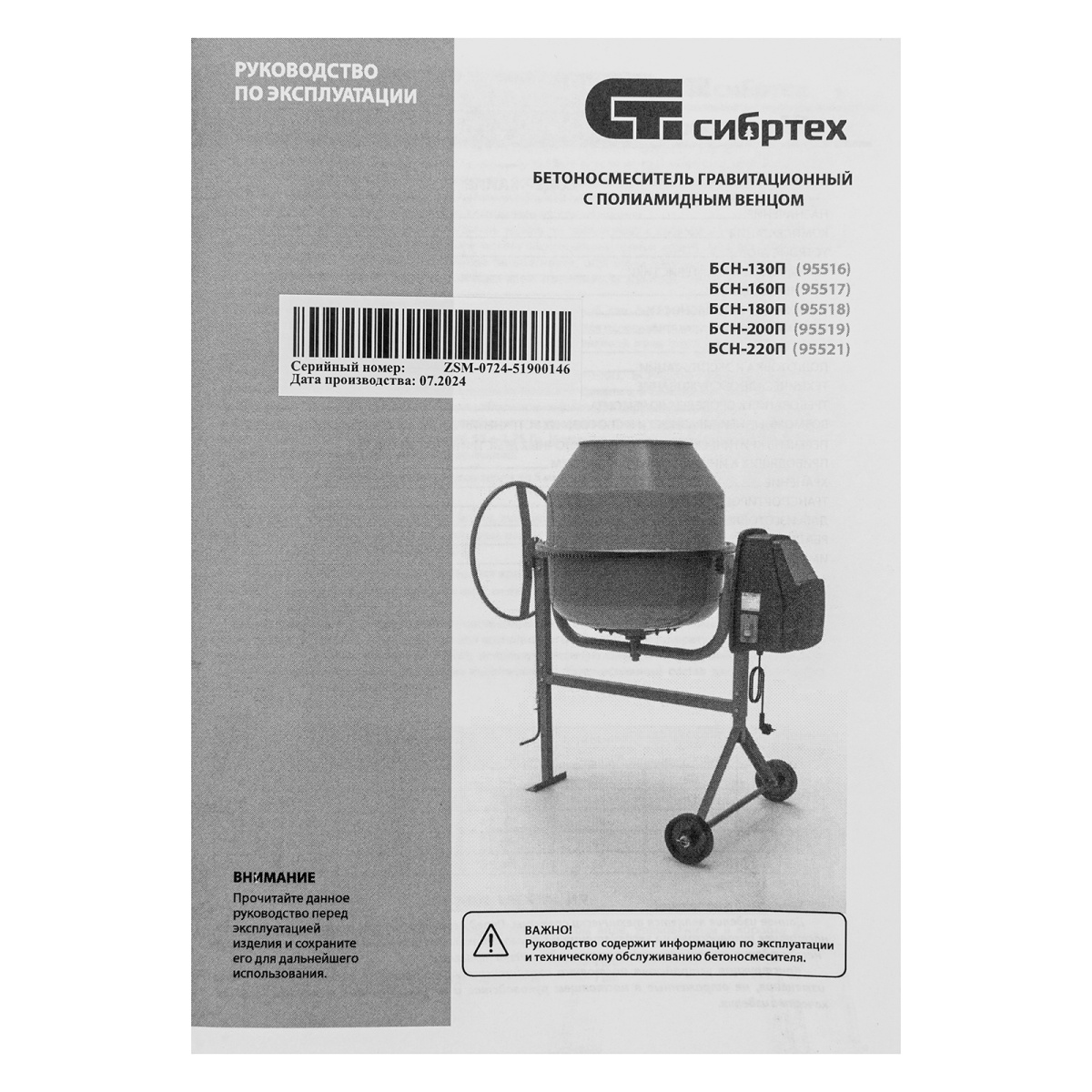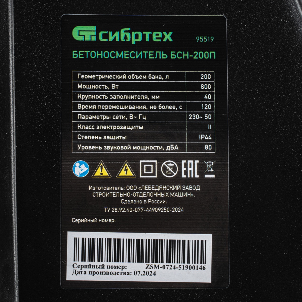 Купить Бетоносмеситель БСН-200П, мощность 800 Вт, полиамидный венец Сибртех V527 по лучшей цене с доставкой - интернет магазин №1 в России
