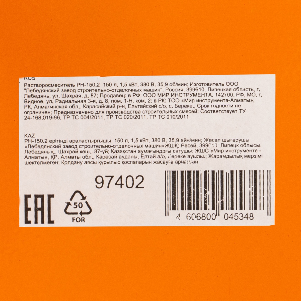 Купить Растворосмеситель РН-150.2, 150 л, 1.5 кВт, 380 В, 35, 9 V5938 по лучшей цене с доставкой - интернет магазин №1 в России