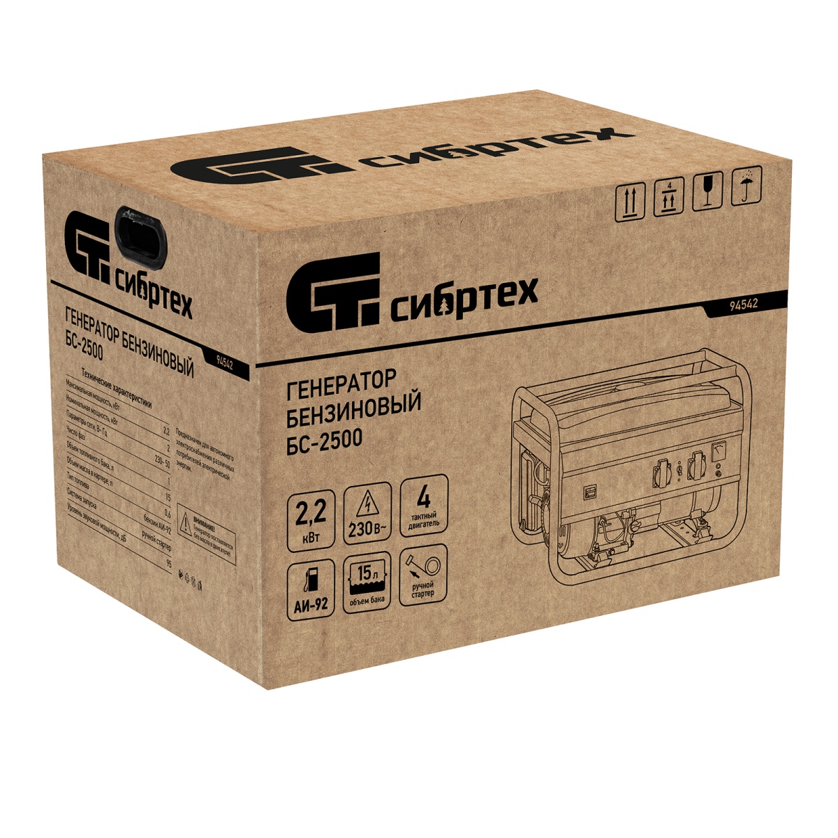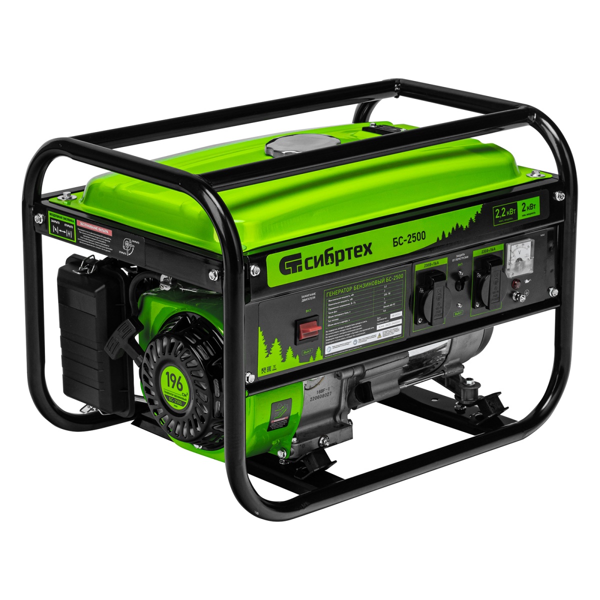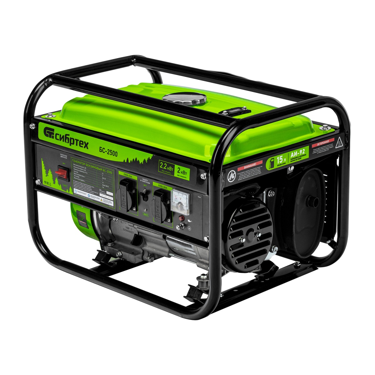 Купить Генератор бензиновый БС-2500, 2.2 кВт, 230В, четырехтактный, 15 л, ручной стартер Сибртех V1318 по лучшей цене с доставкой - интернет магазин №1 в России
