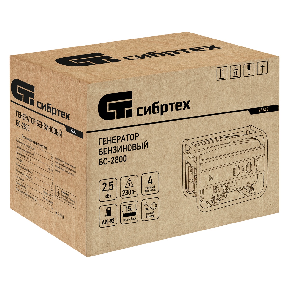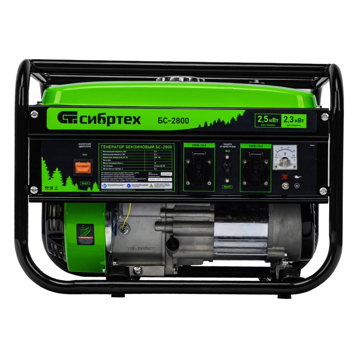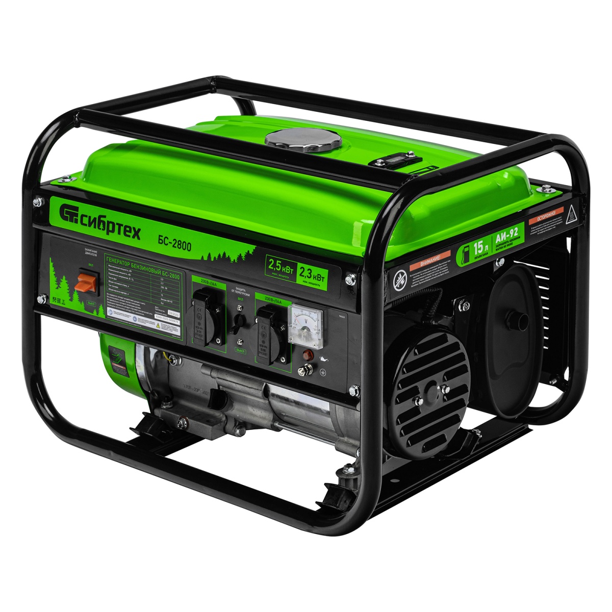 Купить Генератор бензиновый БС-2800, 2.5 кВт, 230В, четырехтактный, 15 л, ручной стартер Сибртех V1319 по лучшей цене с доставкой - интернет магазин №1 в России