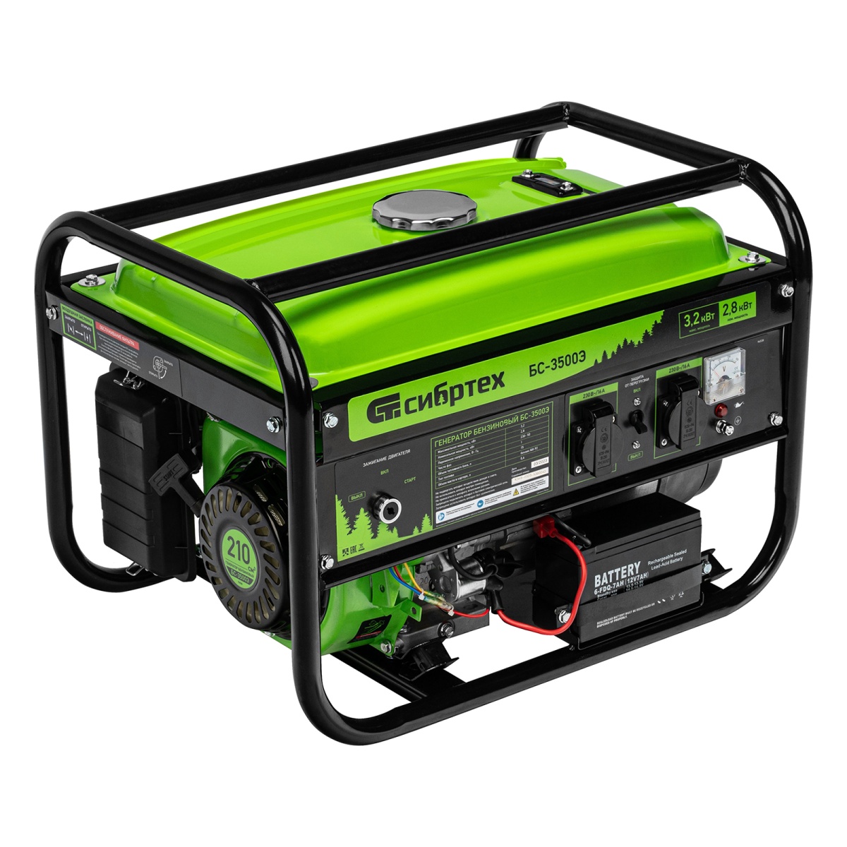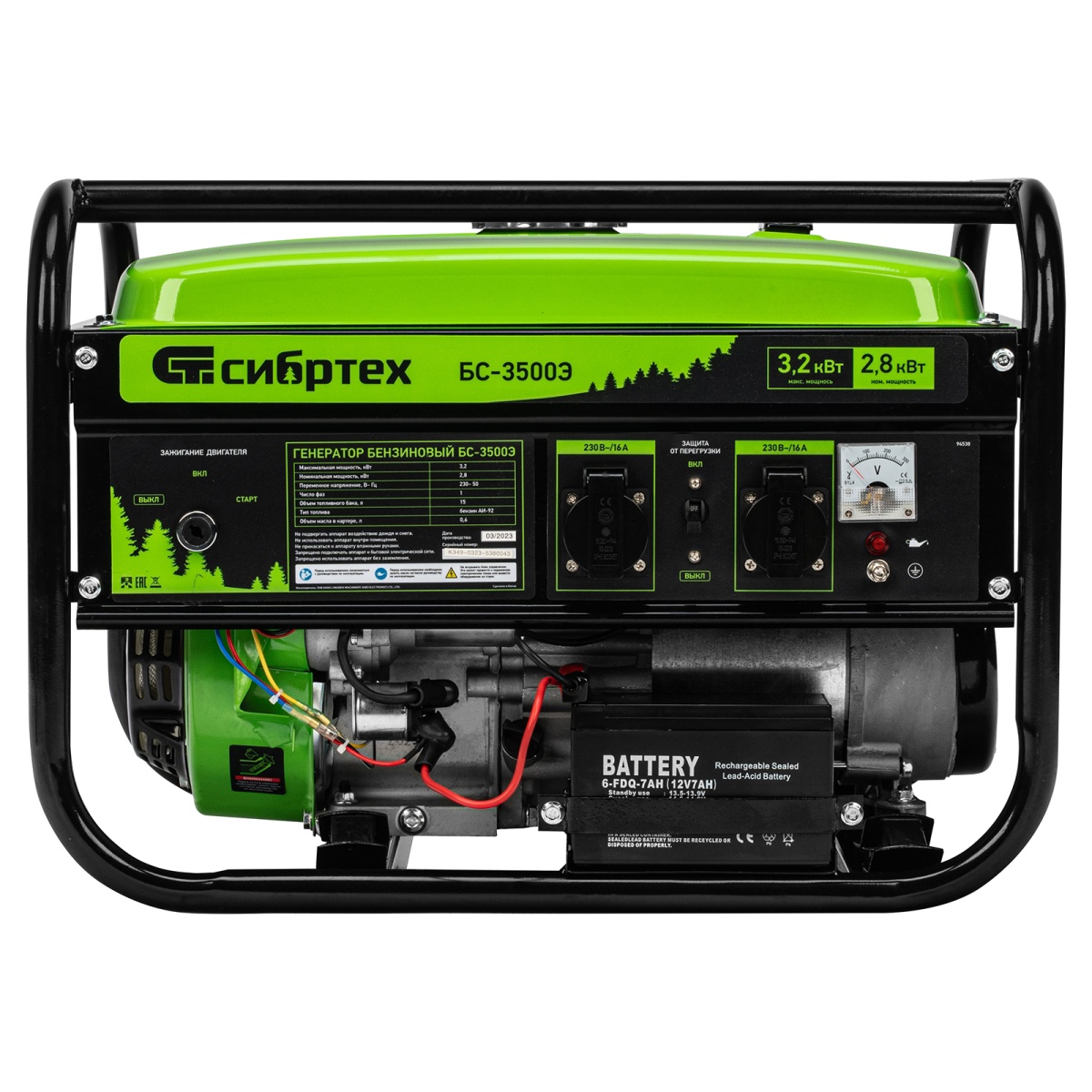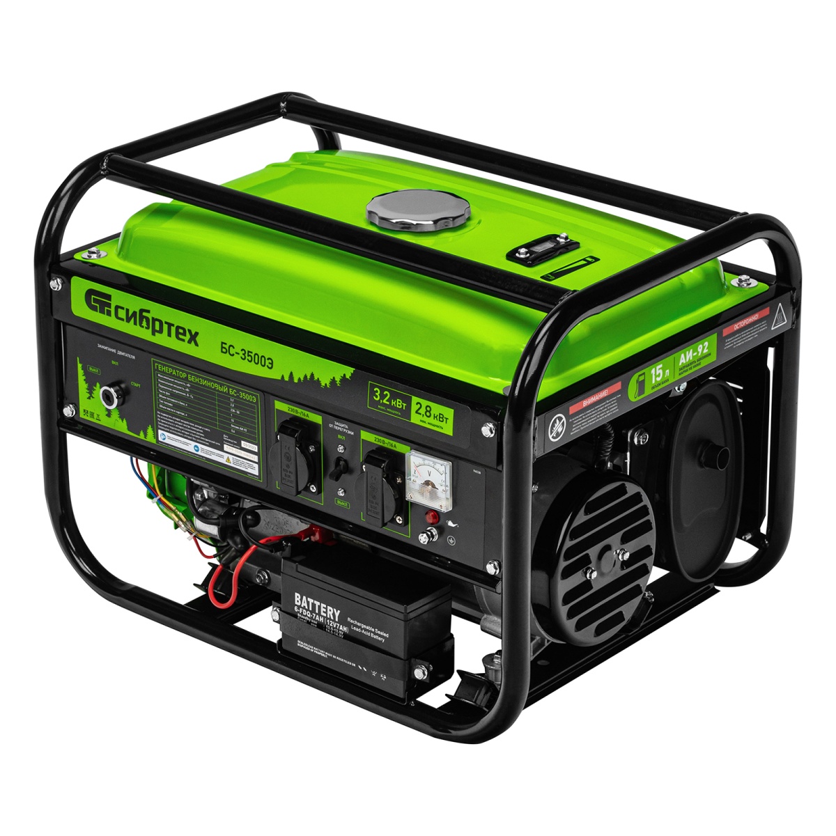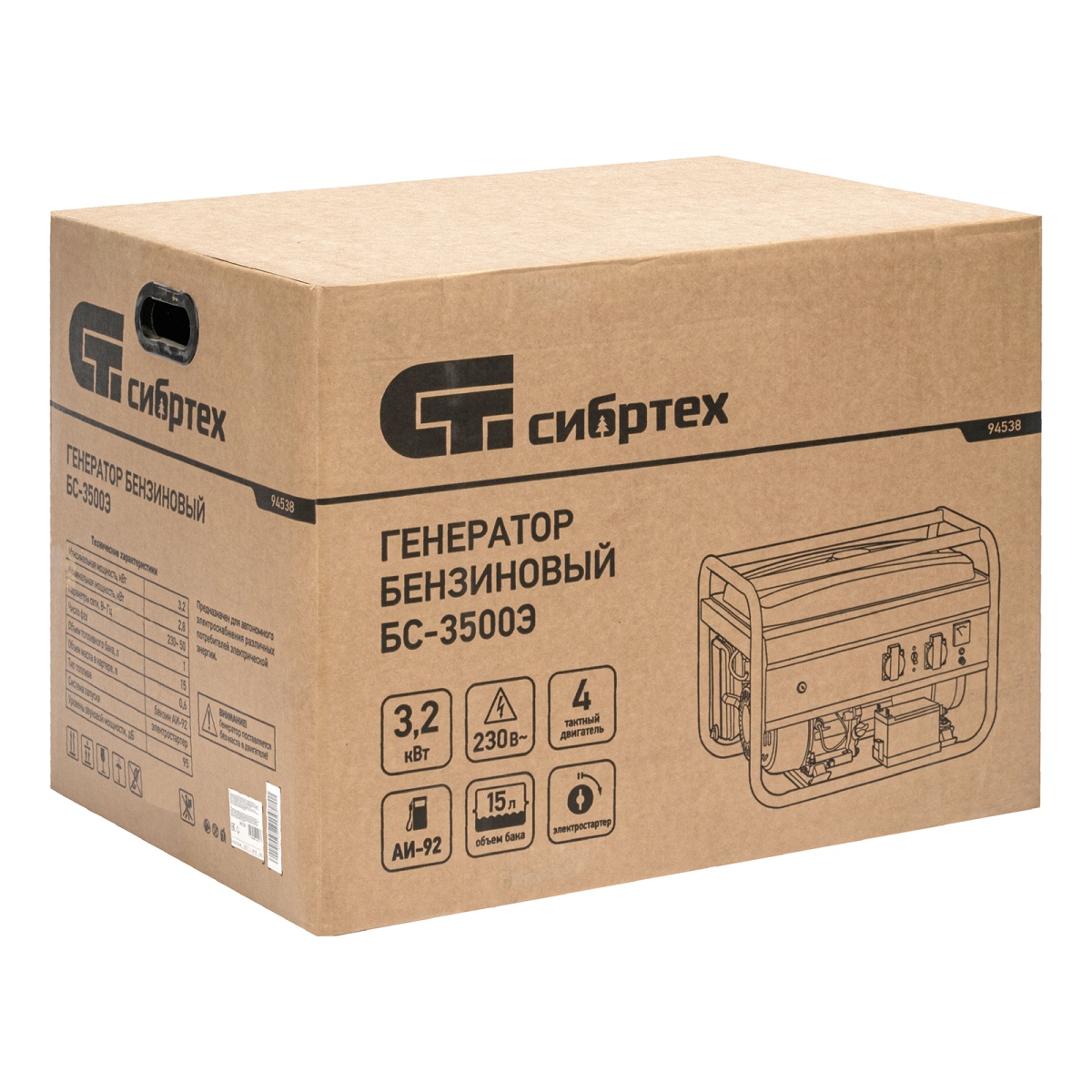 Купить Генератор бензиновый БС-3500Э, 3.2 кВт, 230В, 4-х тактный, 15 л, электростартер Сибртех V1321 по лучшей цене с доставкой - интернет магазин №1 в России