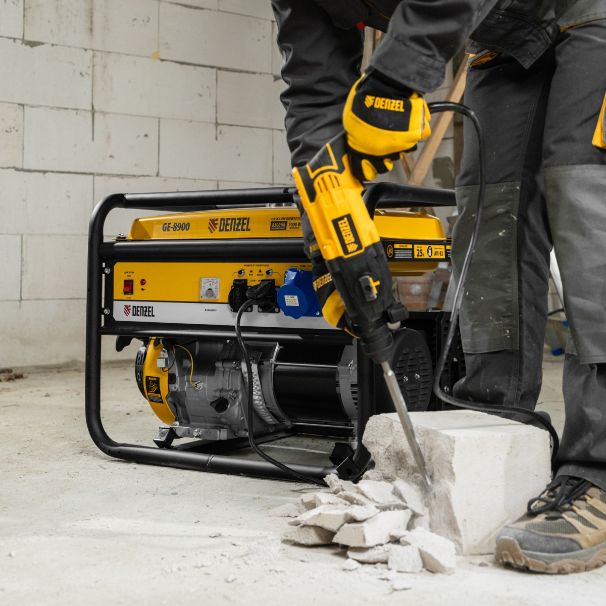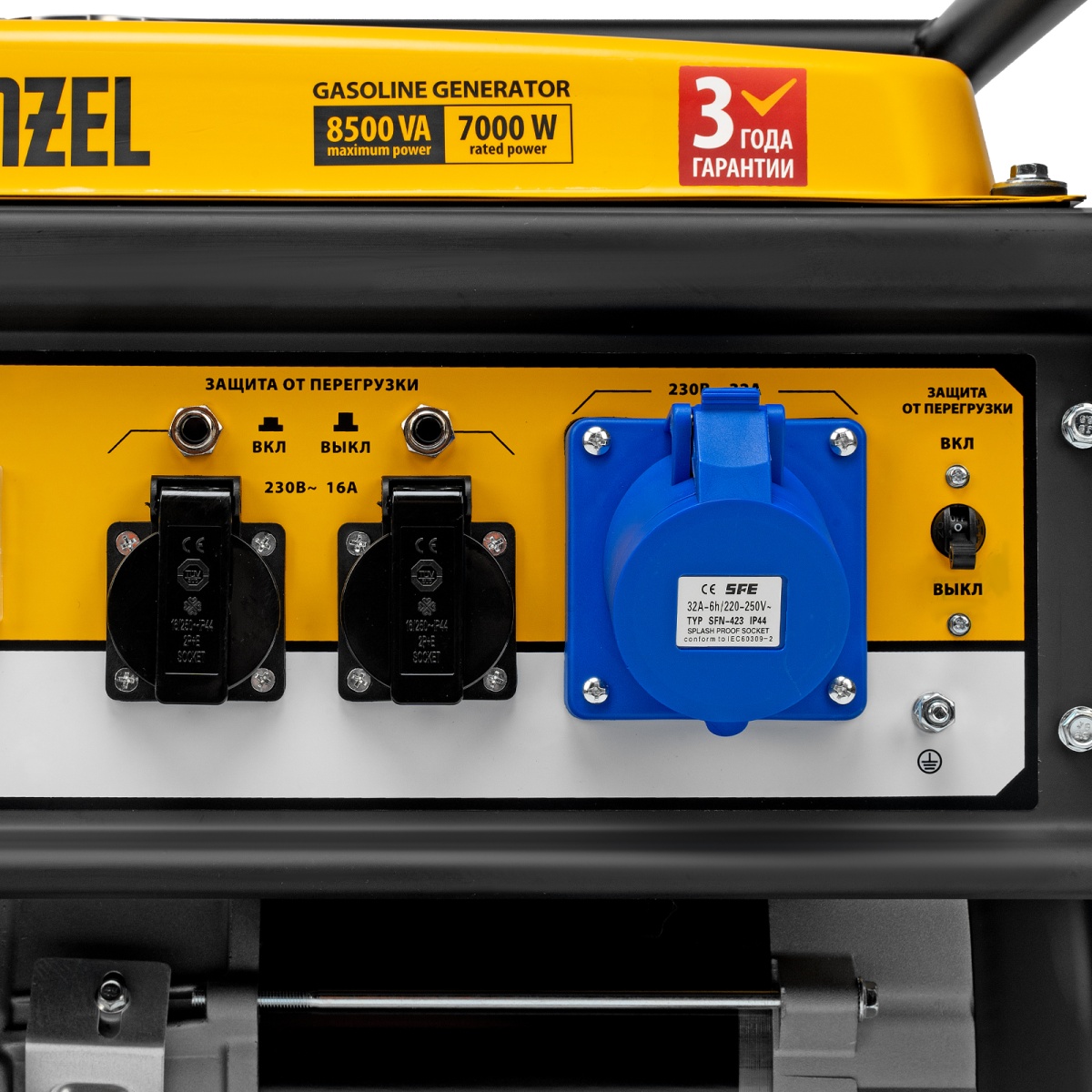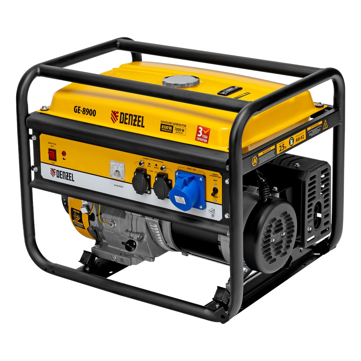 Генератор бензиновый GE 8900, 8.5 кВт, 220 В/50 Гц, 25 л, ручной старт Denzel