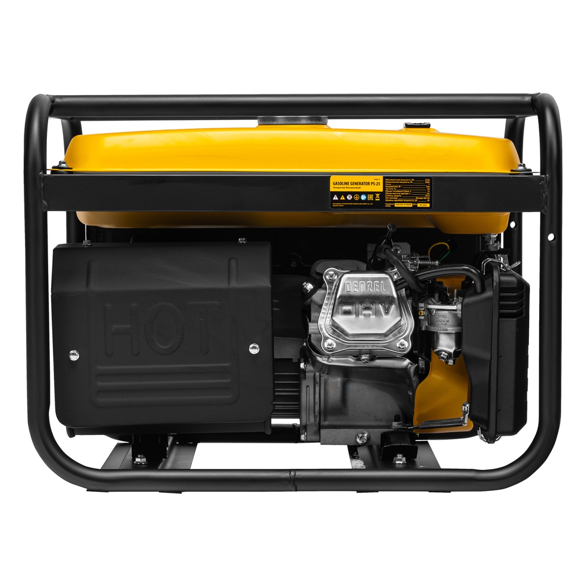 Наличие клапана для сброса давления Генератор бензиновый PS 25, 2.5 кВт, 230 В, 15 л, ручной стартер Denzel