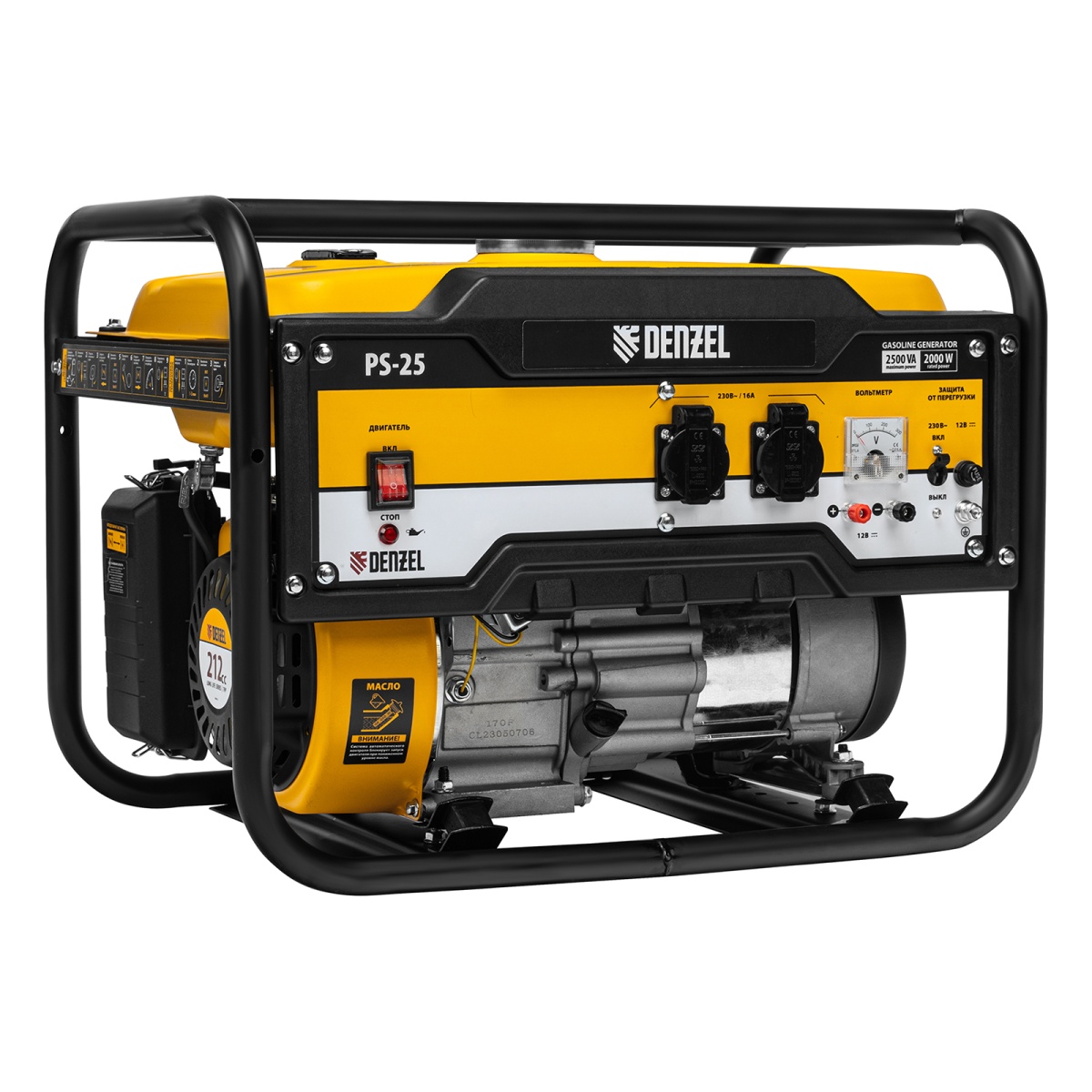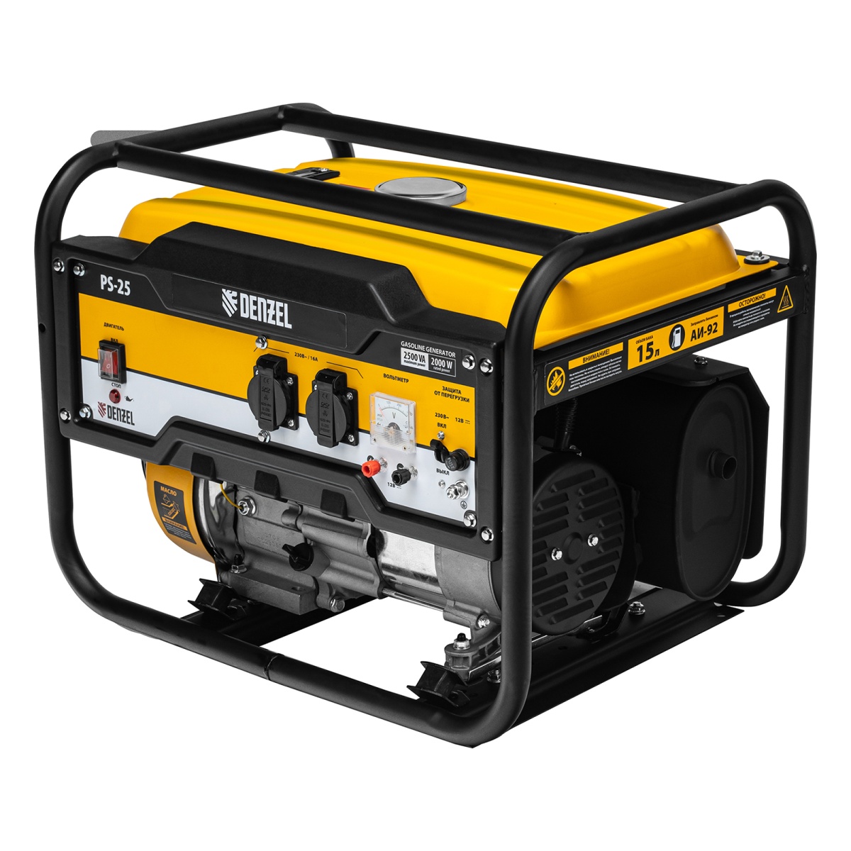 Купить Генератор бензиновый PS 25, 2.5 кВт, 230 В, 15 л, ручной стартер Denzel V1296 по лучшей цене с доставкой - интернет магазин №1 в России