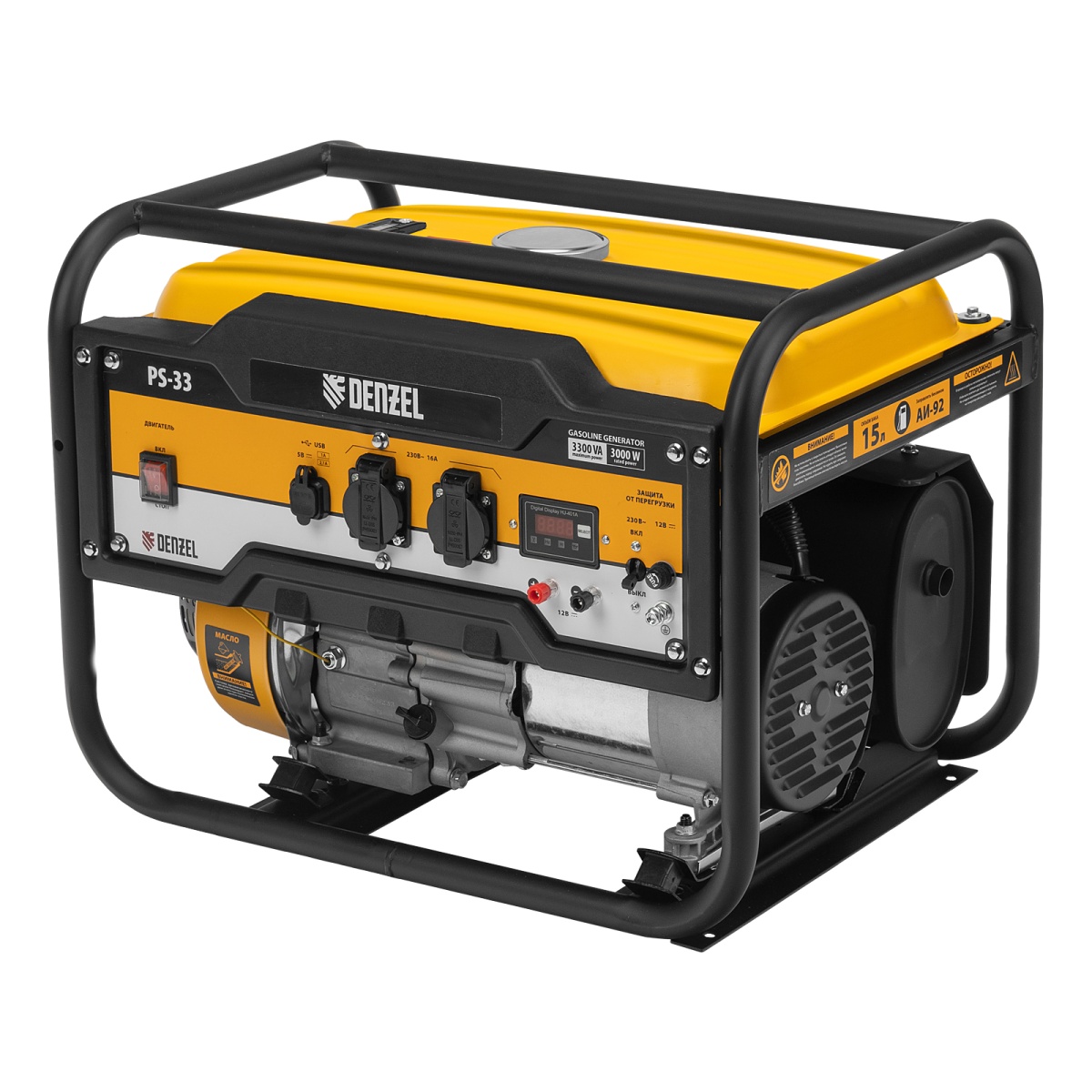 Купить Генератор бензиновый PS 33, 3.3 кВт, 230 В, 15 л, ручной стартер Denzel V1298 по лучшей цене с доставкой - интернет магазин №1 в России