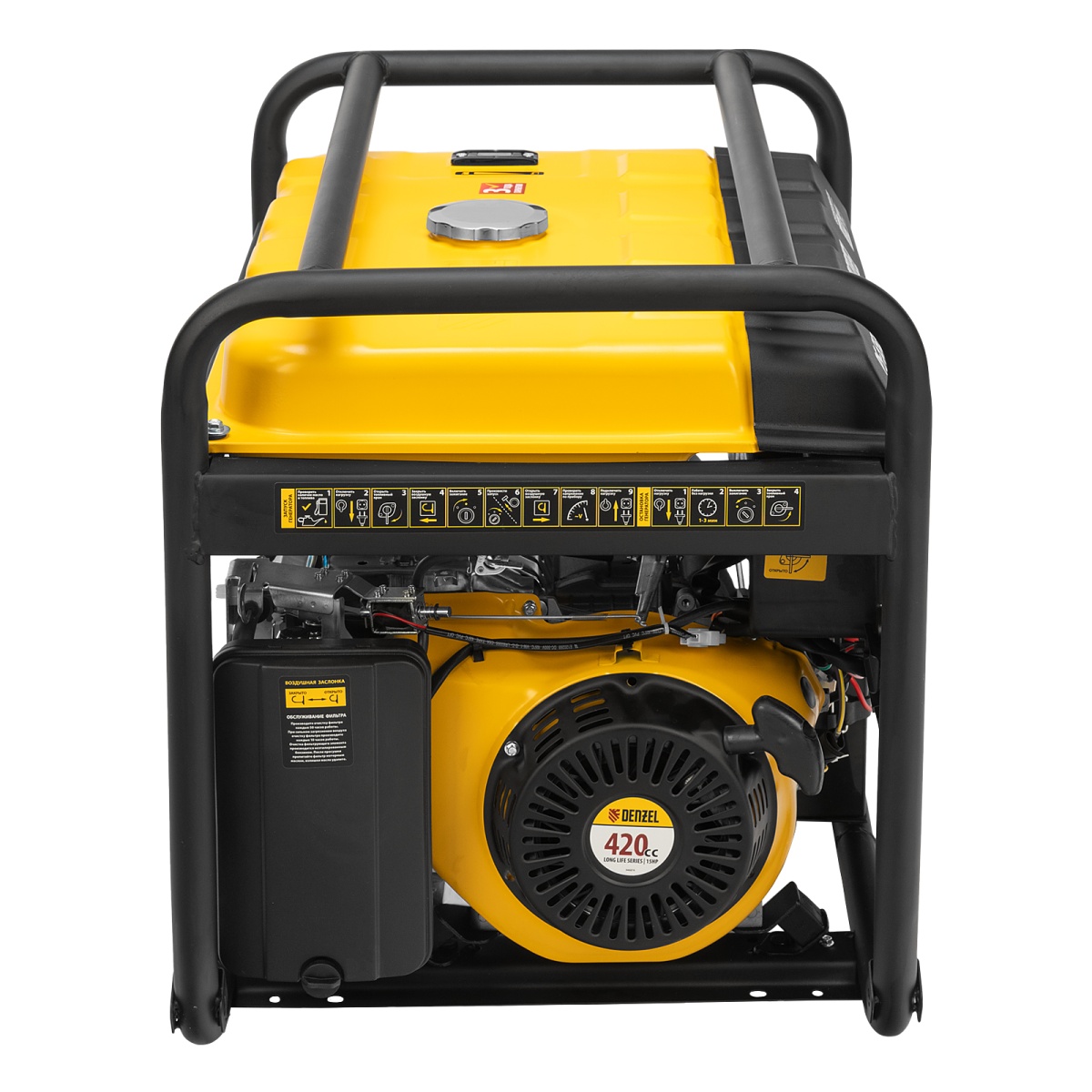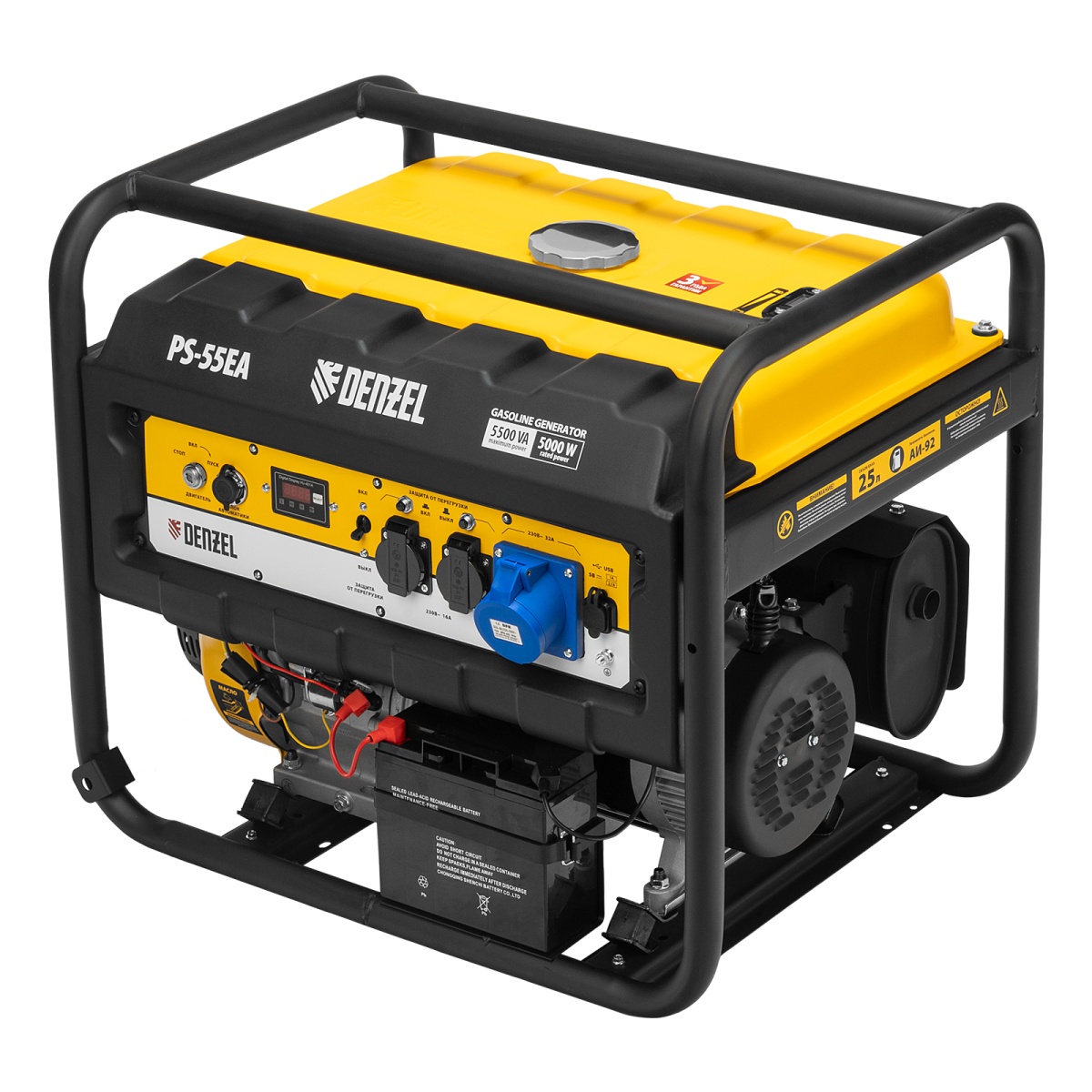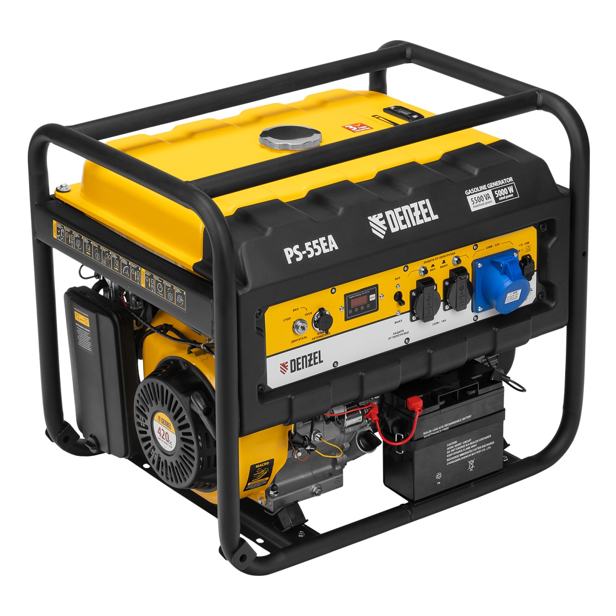 Купить Генератор бензиновый PS 55 EA, 5.5 кВт, 230 В, 25 л, коннектор автоматики, электростартер Denzel V1299 по лучшей цене с доставкой - интернет магазин №1 в России