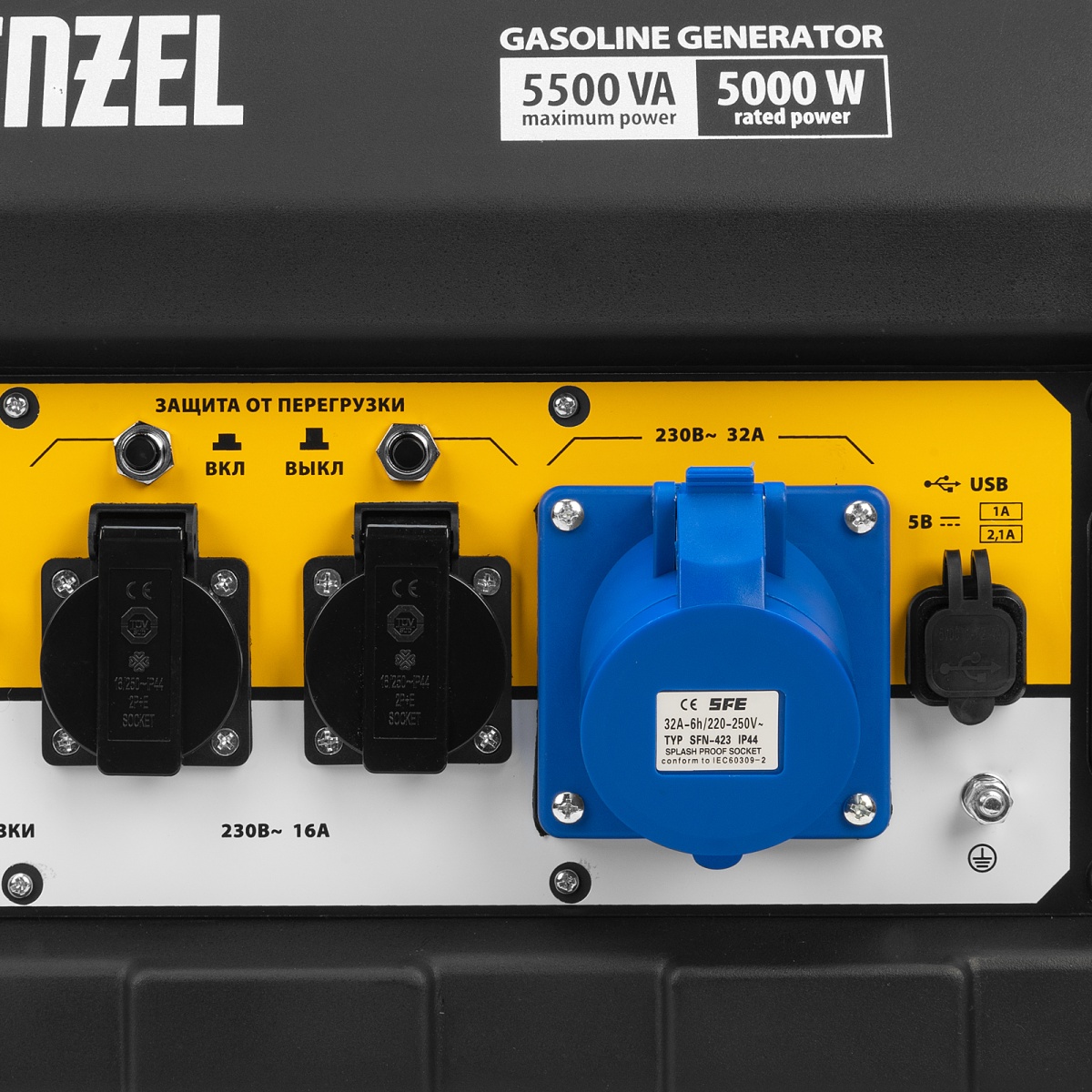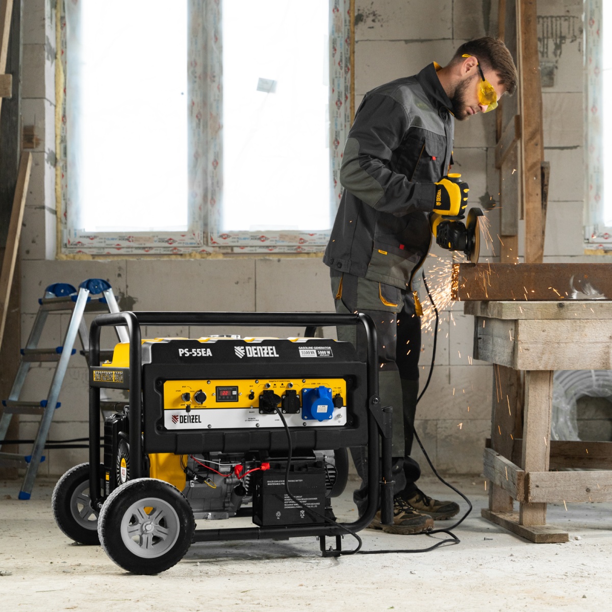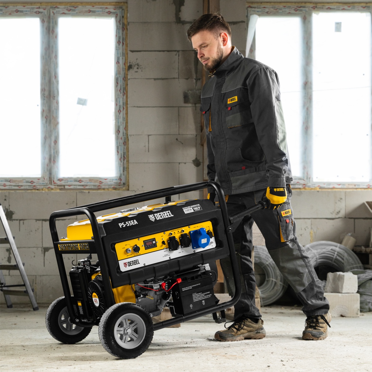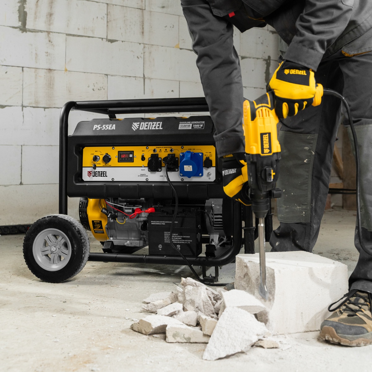 Купить Генератор бензиновый PS 55 EA, 5.5 кВт, 230 В, 25 л, коннектор автоматики, электростартер Denzel V1299 по лучшей цене с доставкой - интернет магазин №1 в России