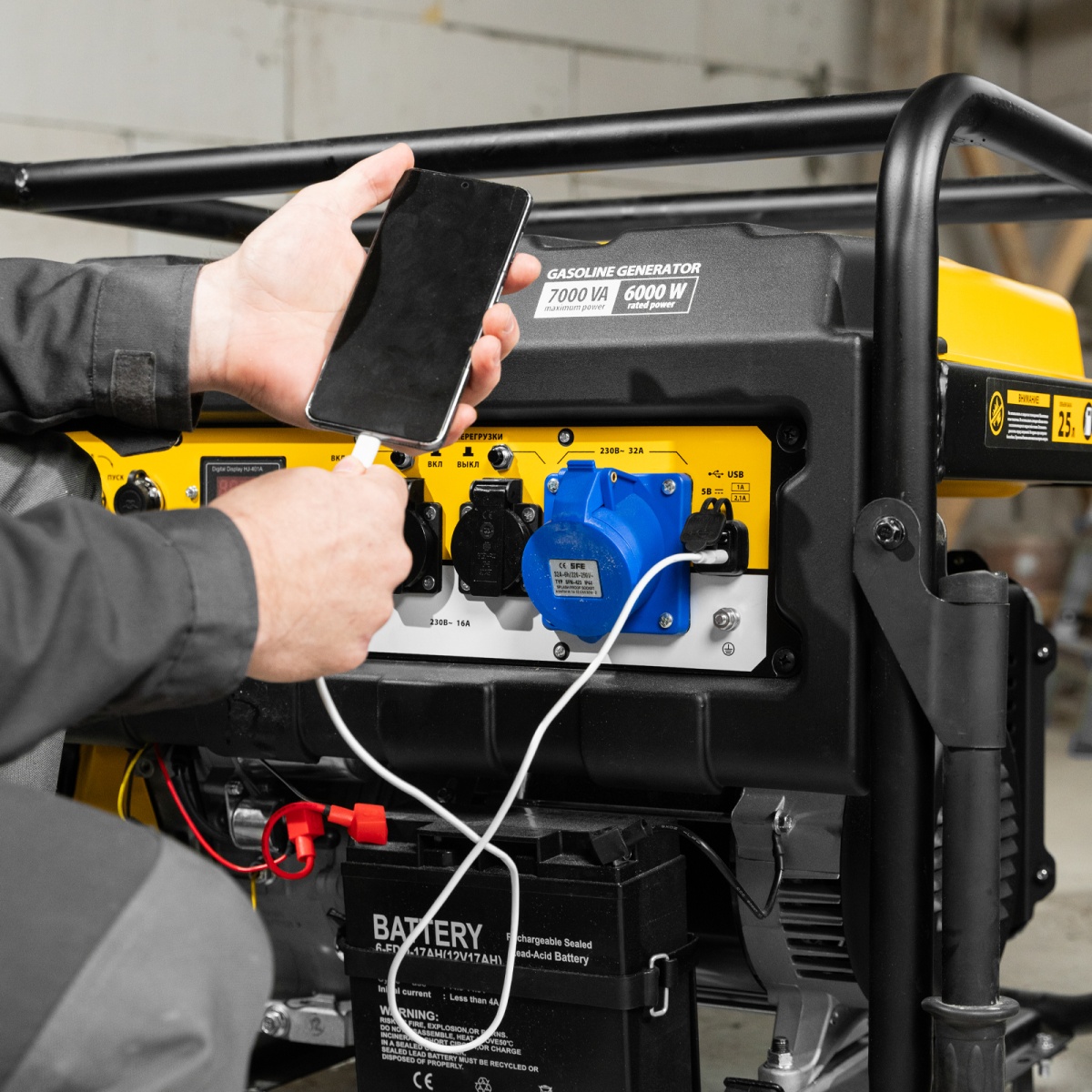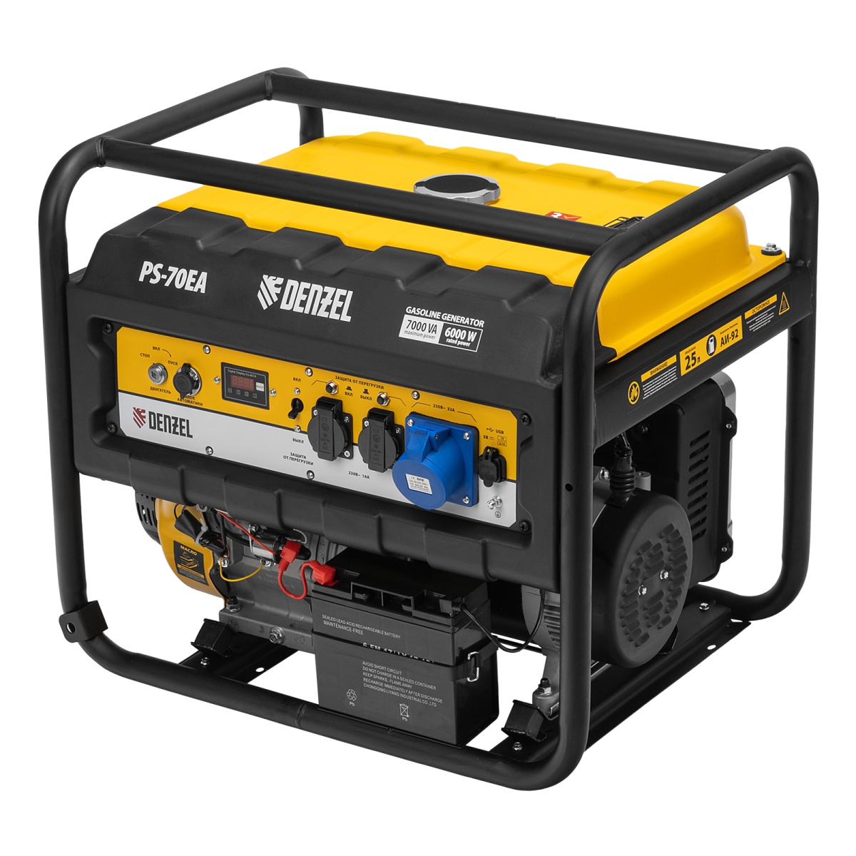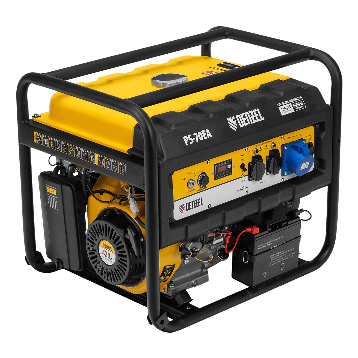 Купить Генератор бензиновый PS 70 EA, 7.0 кВт, 230 В, 25 л, коннектор автоматики, электростартер Denzel V1300 по лучшей цене с доставкой - интернет магазин №1 в России