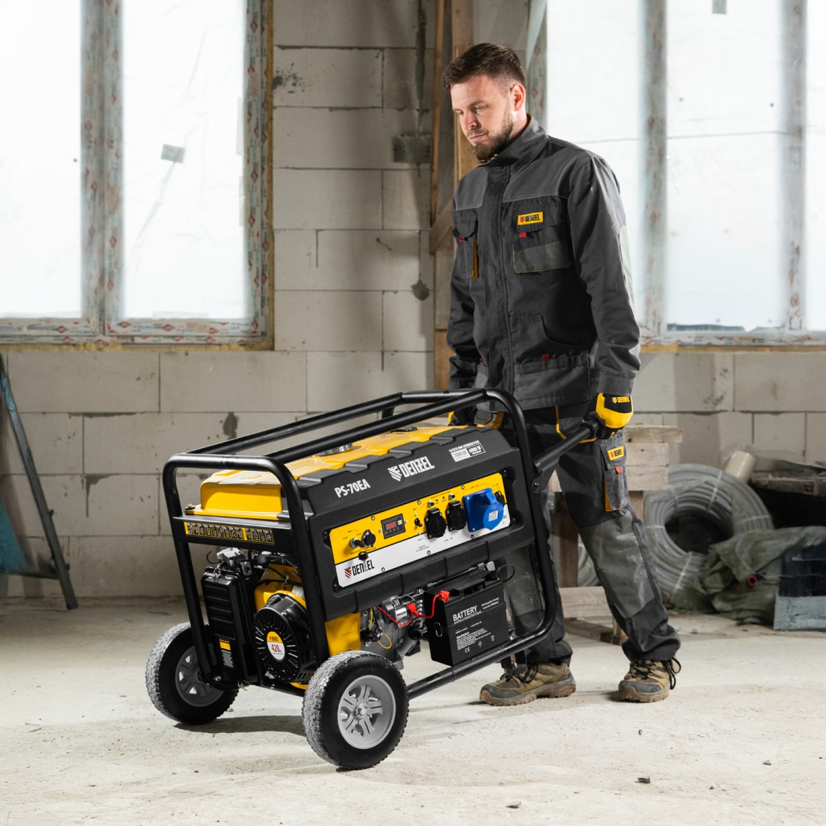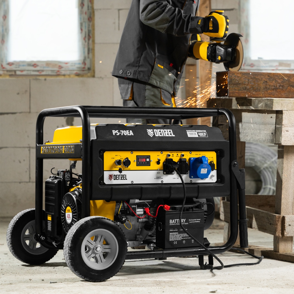 Генератор бензиновый PS 70 EA, 7.0 кВт, 230 В, 25 л, коннектор автоматики, электростартер Denzel