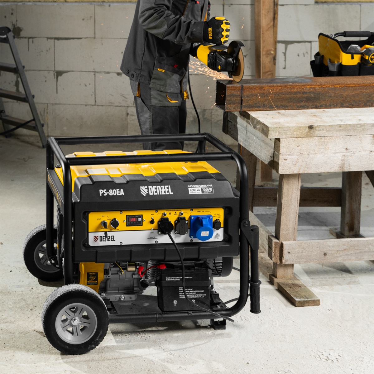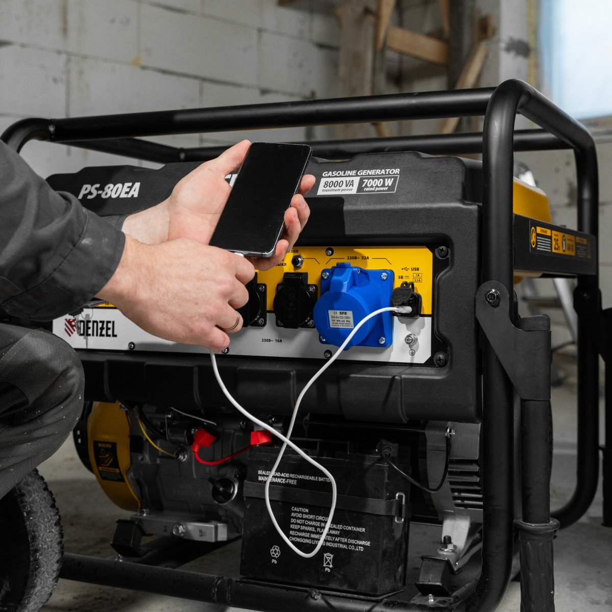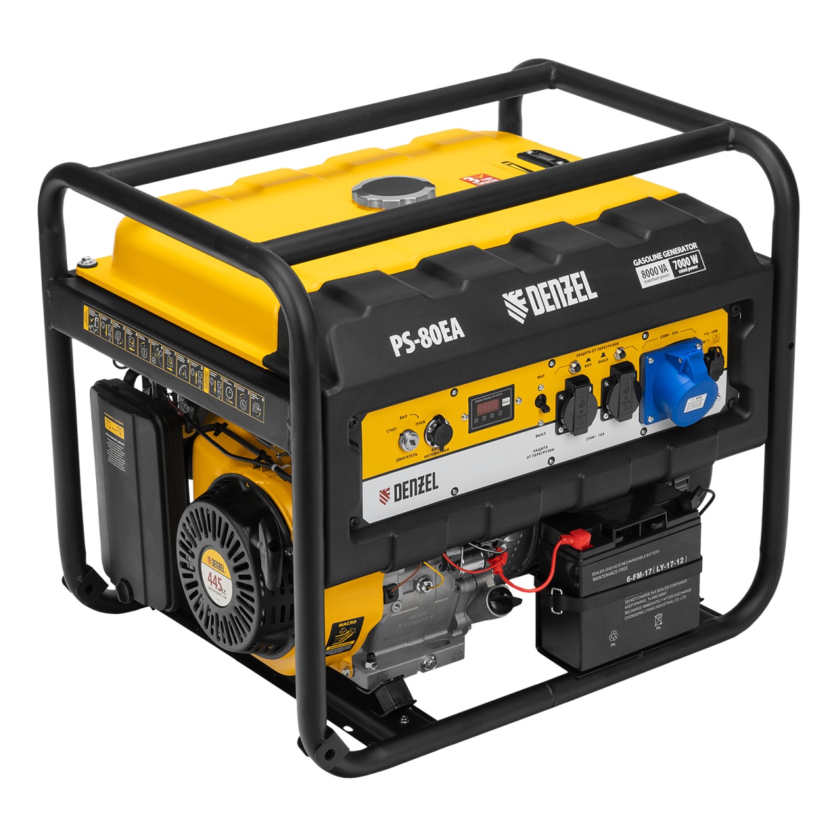 Купить Генератор бензиновый PS 80 EA, 8.0 кВт, 230 В, 25 л, коннектор автоматики, электростартер Denzel V1302 по лучшей цене с доставкой - интернет магазин №1 в России