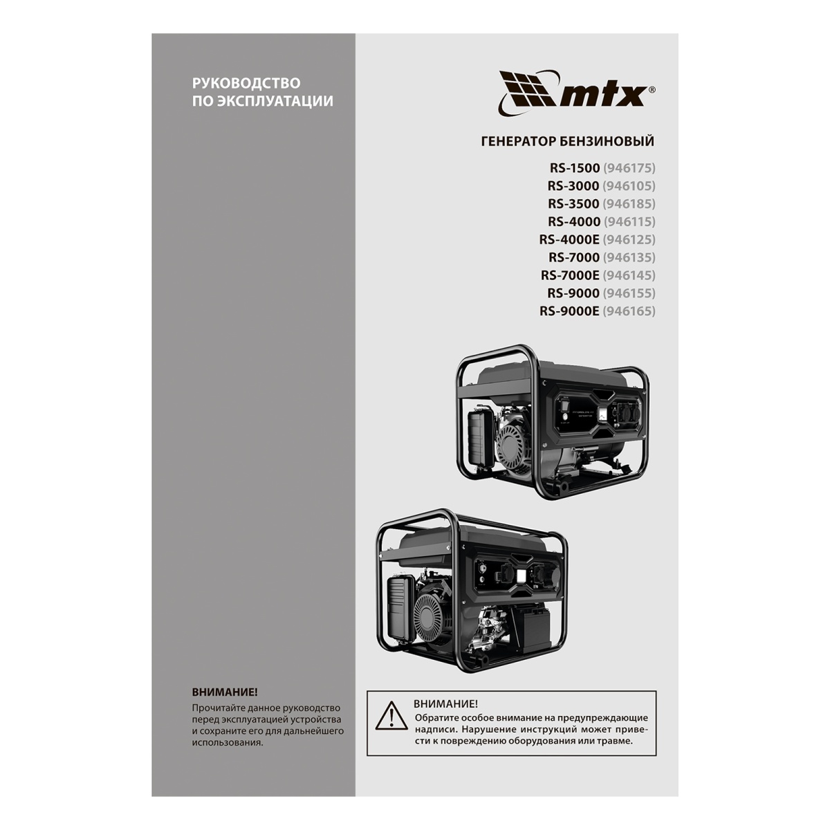 Генератор бензиновый RS-7000E, 6 кВт, 230В, электростартер MTX