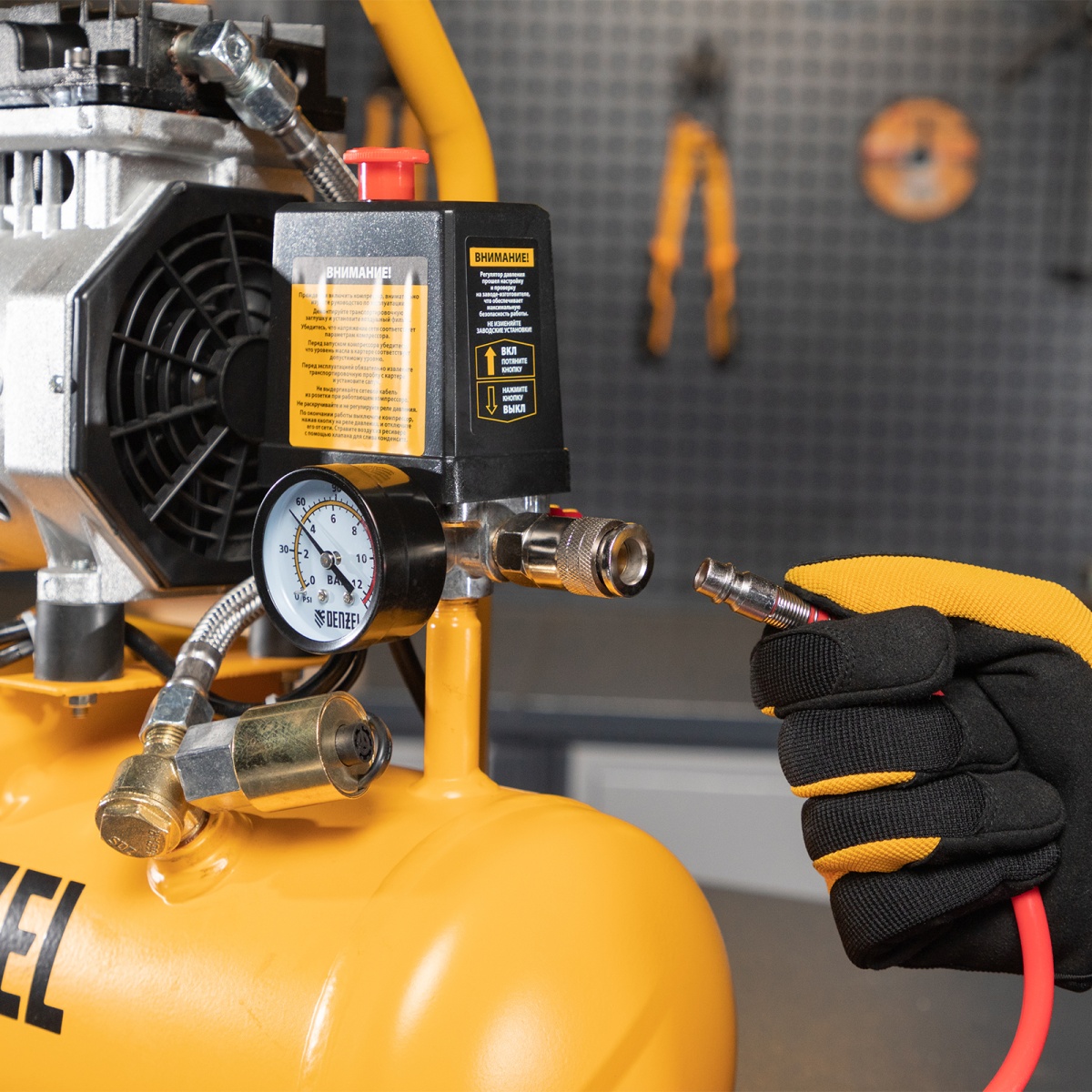 Купить Компрессор DLS650/10 безмаслянный малошумный 650 Вт, 120 л/мин, ресивер 10 л Denzel V2780 по лучшей цене с доставкой - интернет магазин №1 в России