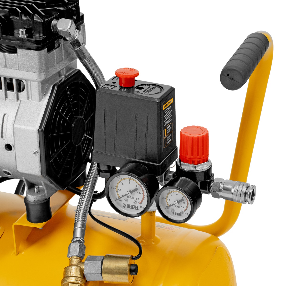 Купить Компрессор DLS950/24 безмаслянный малошумный 950 Вт, 165 л/мин, ресивер 24 л Denzel V2781 по лучшей цене с доставкой - интернет магазин №1 в России
