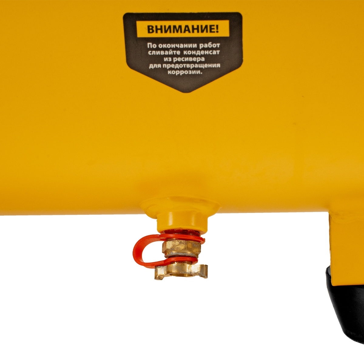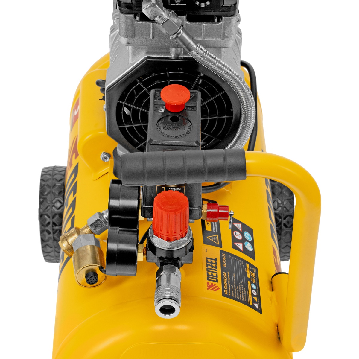 Наличие клапана для сброса давления Компрессор DLS950/24 безмаслянный малошумный 950 Вт, 165 л/мин, ресивер 24 л Denzel