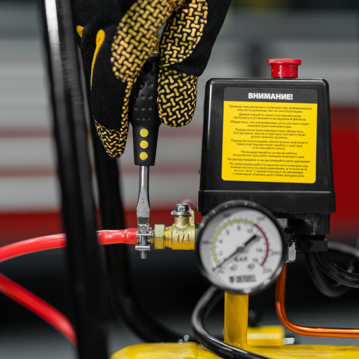 Наличие клапана для сброса давления Компрессор воздушный BCV2300/100, ременный привод, 2.3 кВт, 100 литров, 440 л/мин Denzel