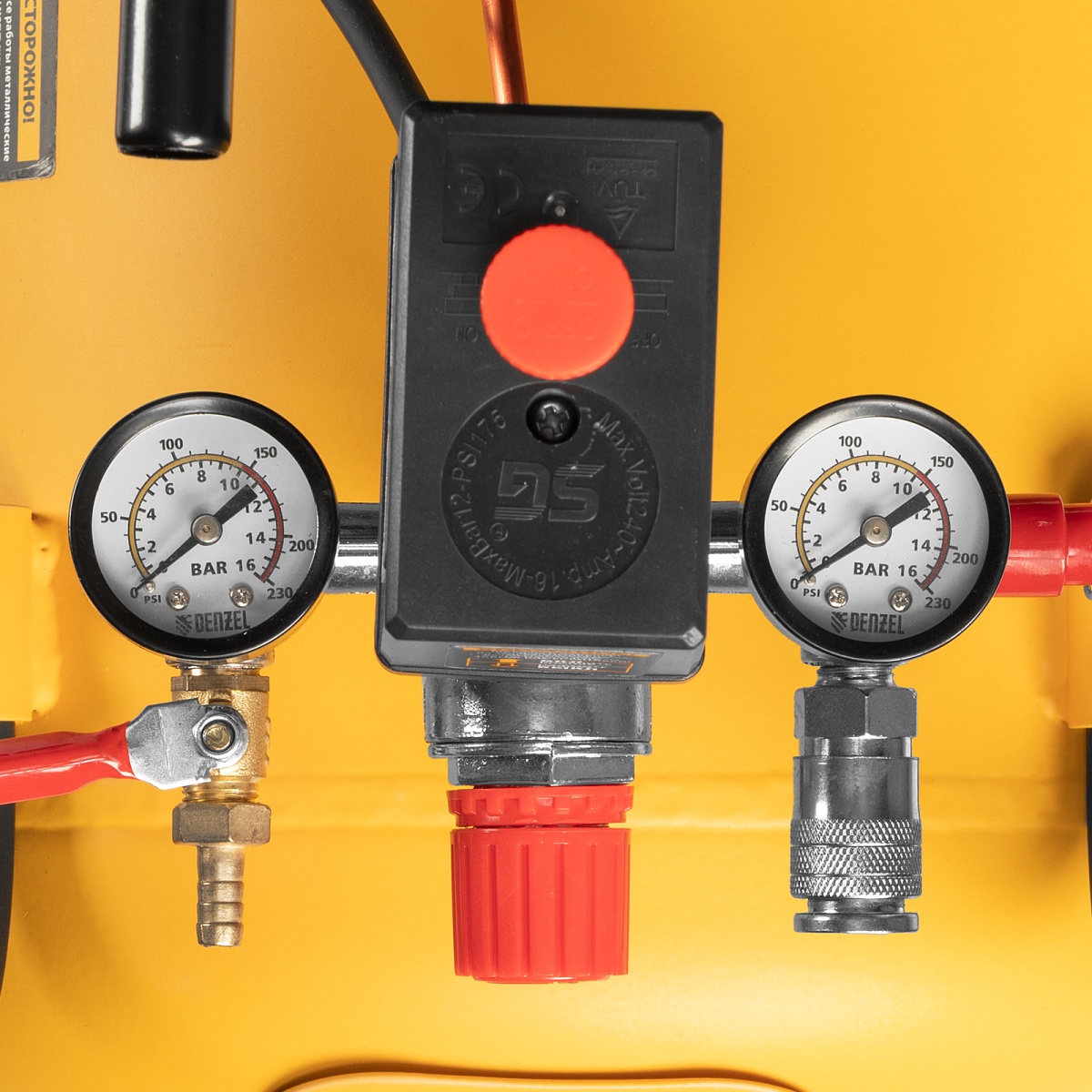 Наличие клапана для сброса давления Компрессор воздушный BCW3000-T/100, ременный привод, 3.0 кВт, 100 литров, 520 л/мин Denzel