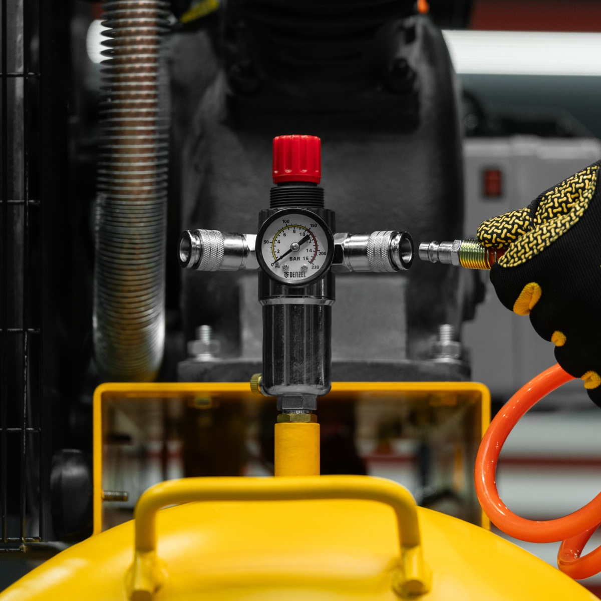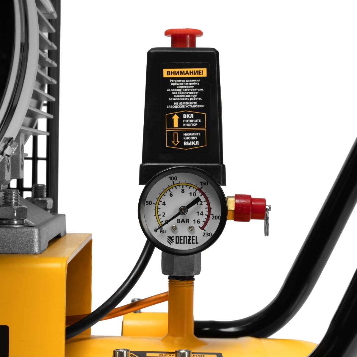 Наличие клапана для сброса давления Компрессор воздушный рем. привод BCV 5500-T/200, 5,5 кВт, 200 литров, 850 л/мин Denzel