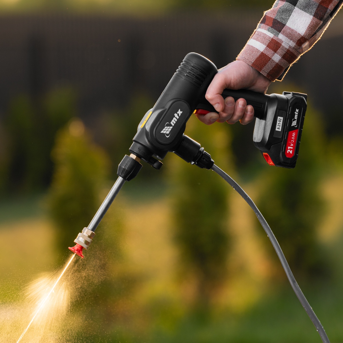 Купить Моечная машина высокого давления аккумуляторная А-21-02, 40 бар, 4 л/мин, Li-ion 21 В, 2 акк. MTX V3993 по лучшей цене с доставкой - интернет магазин №1 в России