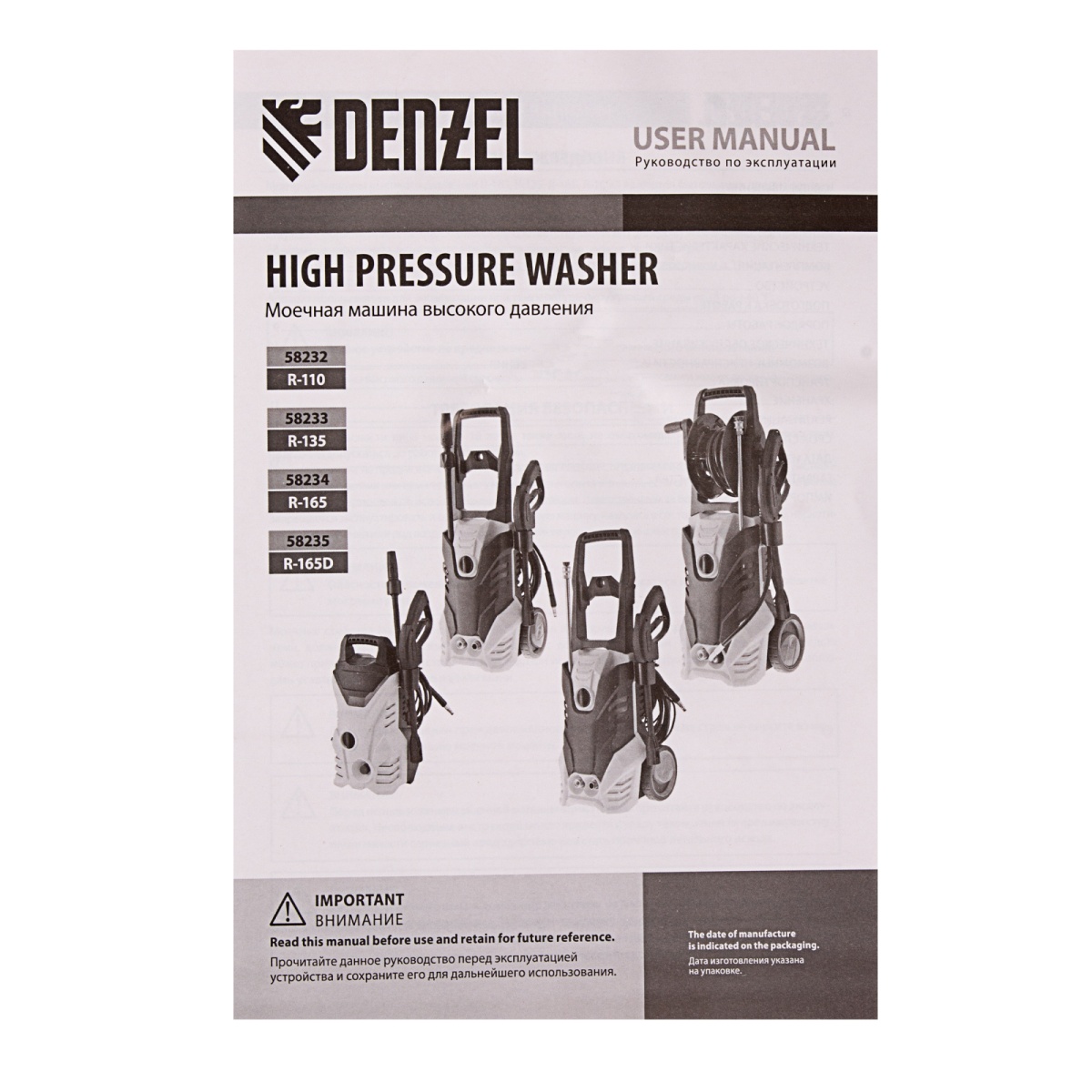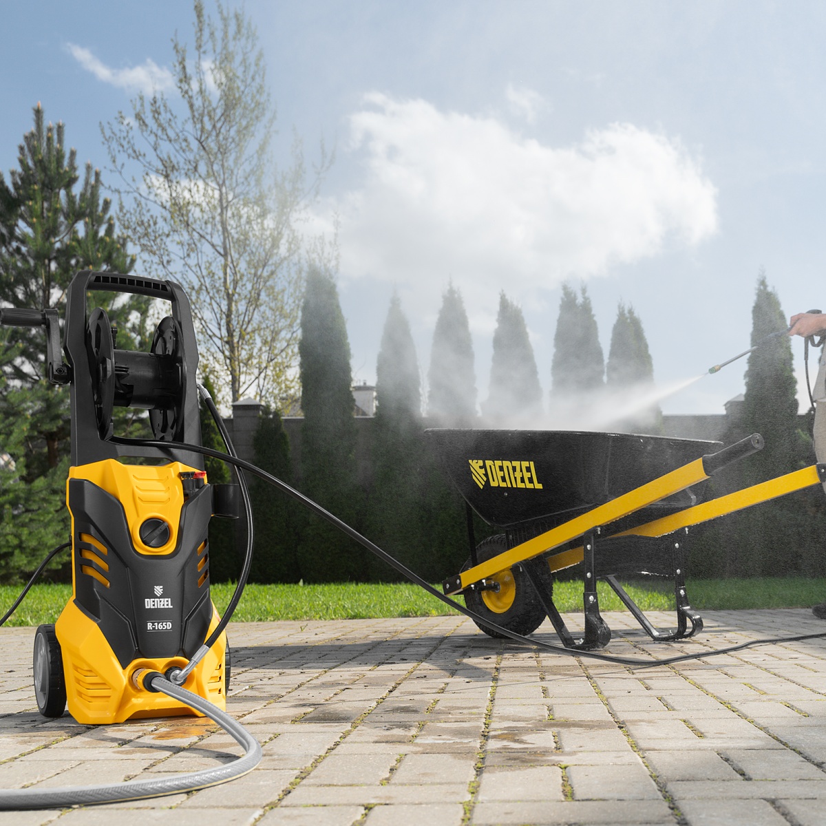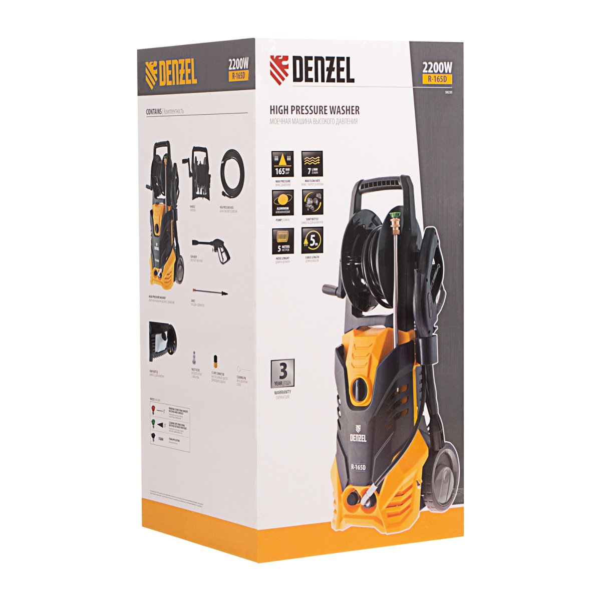 Купить Моечная машина высокого давления R-165D, 2200 Вт, 165 бар, 7 л/мин, с барабаном Denzel V3982 по лучшей цене с доставкой - интернет магазин №1 в России