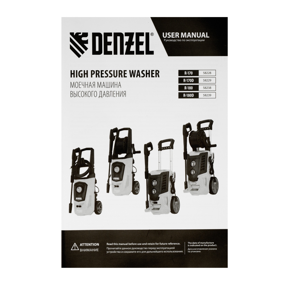 Купить Моечная машина высокого давления R-170, 2000 Вт, 170 бар, 360 л/ч, колесная Denzel V3984 по лучшей цене с доставкой - интернет магазин №1 в России