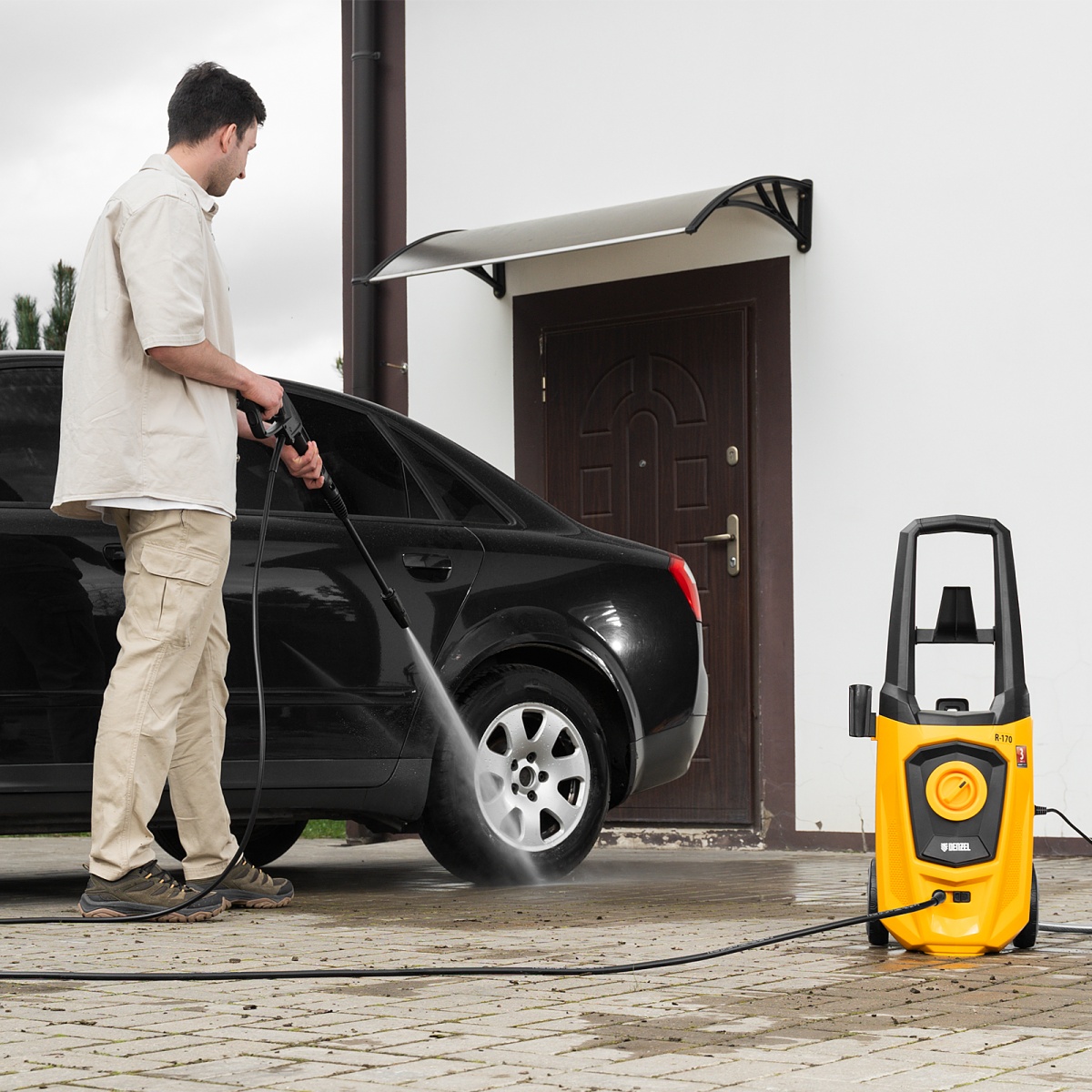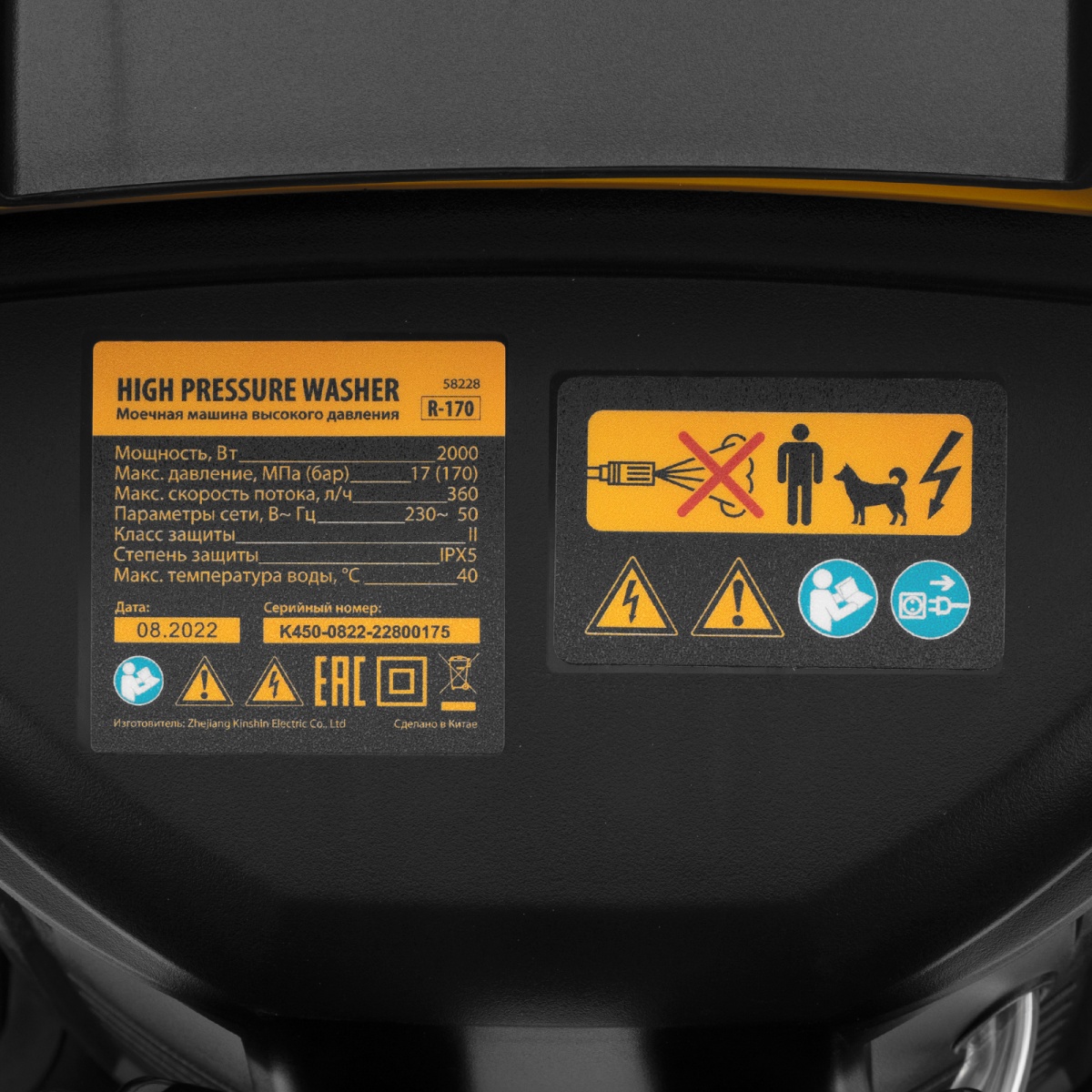 Моечная машина высокого давления R-170, 2000 Вт, 170 бар, 360 л/ч, колесная Denzel
