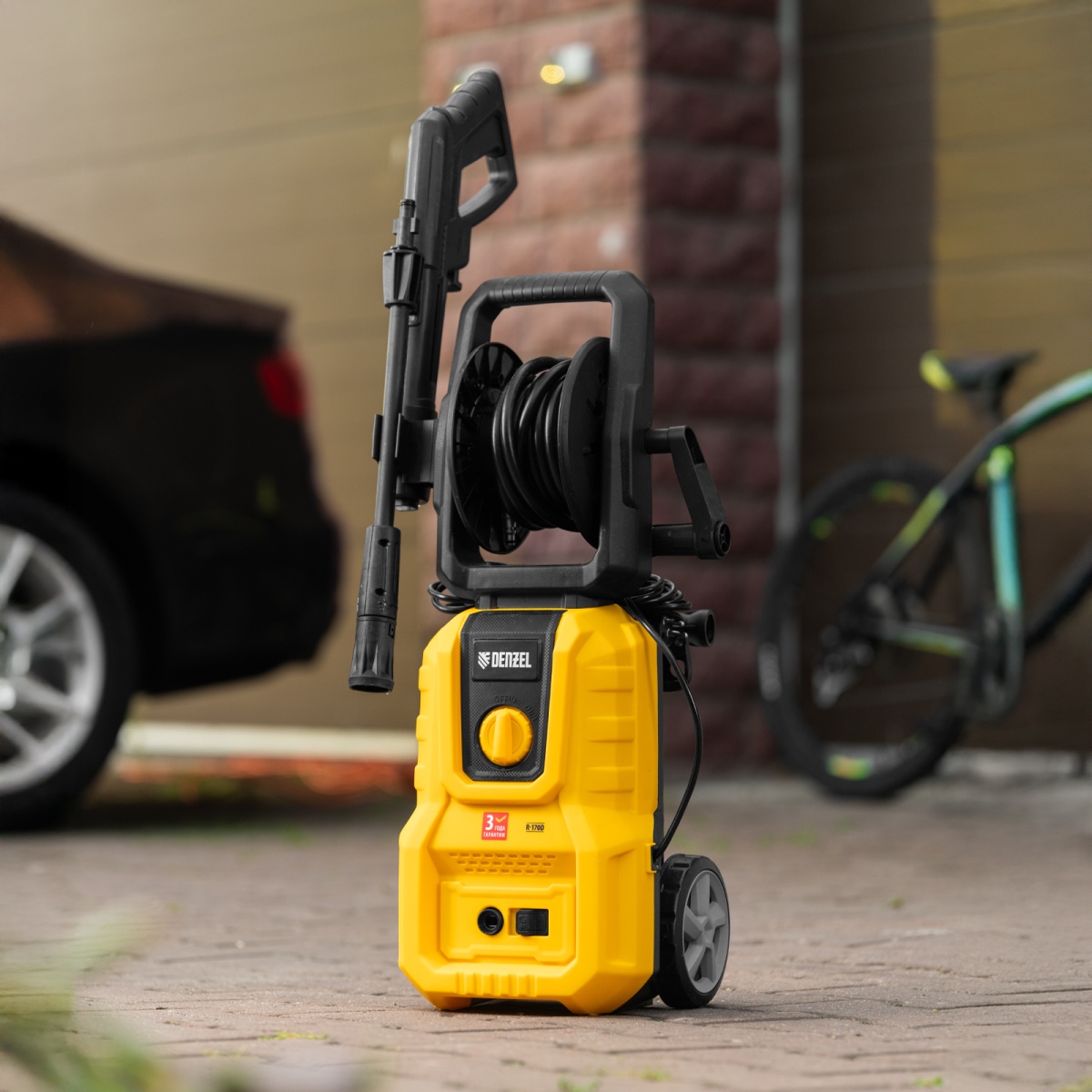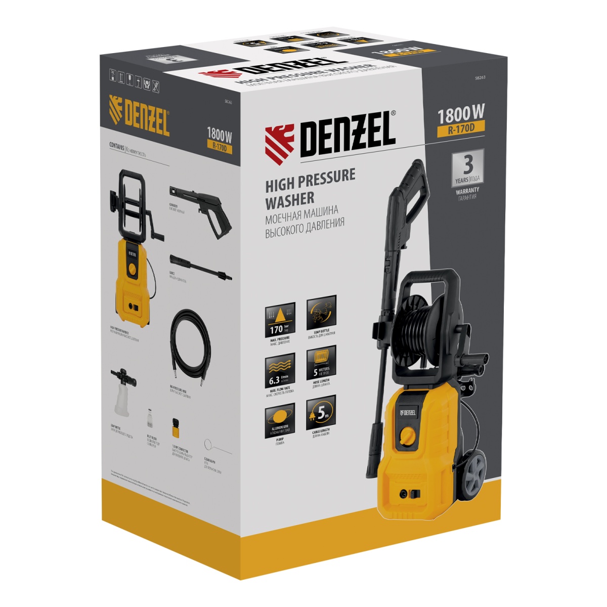 Купить Моечная машина высокого давления R-170D, 1800 Вт, 170 бар, 380 л/ч, с барабаном// Denzel V3985 по лучшей цене с доставкой - интернет магазин №1 в России
