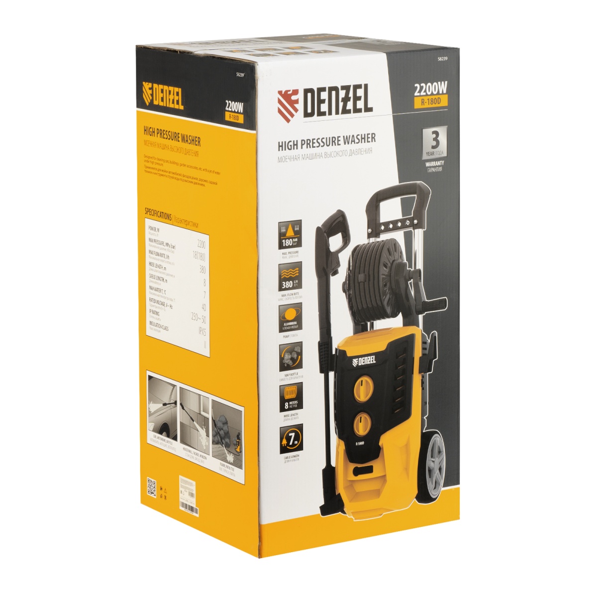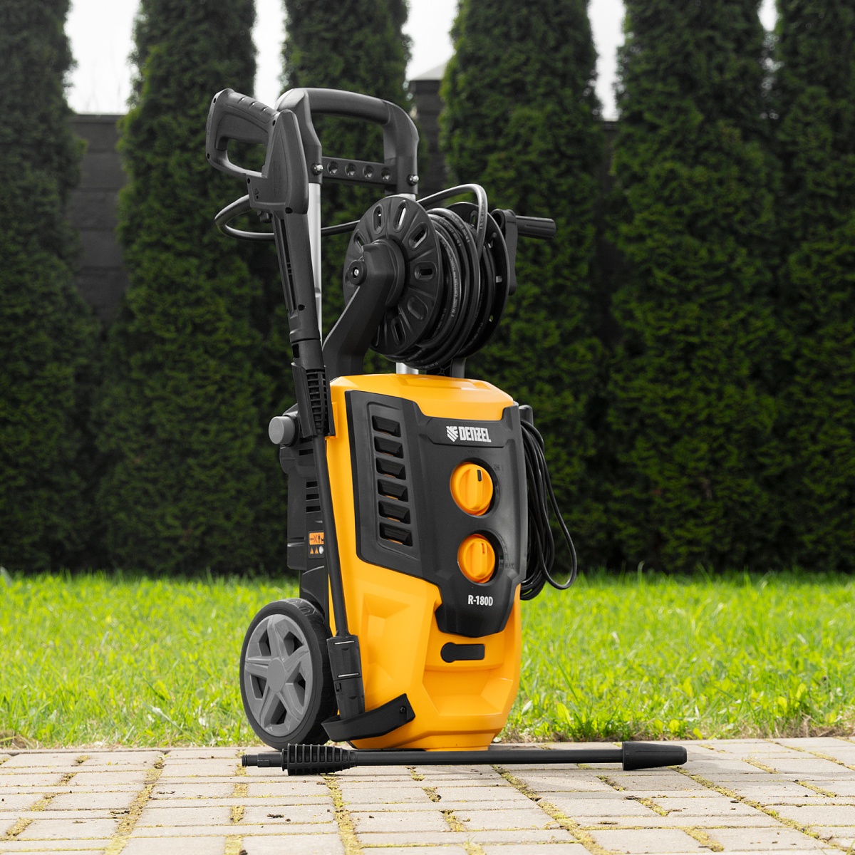 Купить Моечная машина высокого давления R-180D, 2200 Вт, 180 бар, 380 л/ч, с барабаном Denzel V3987 по лучшей цене с доставкой - интернет магазин №1 в России