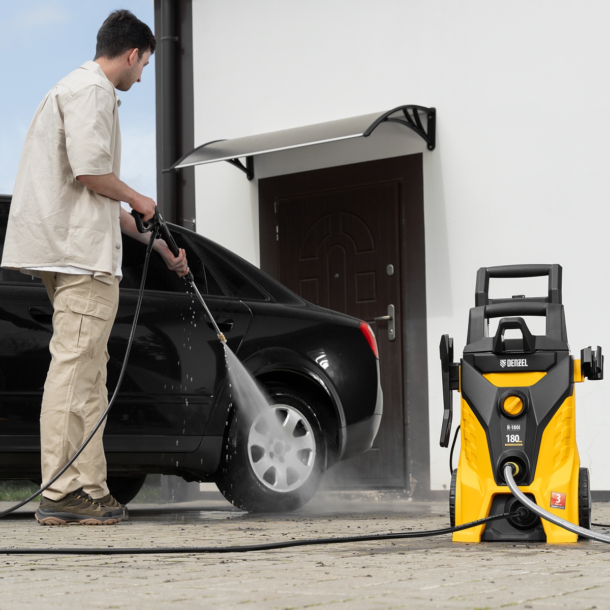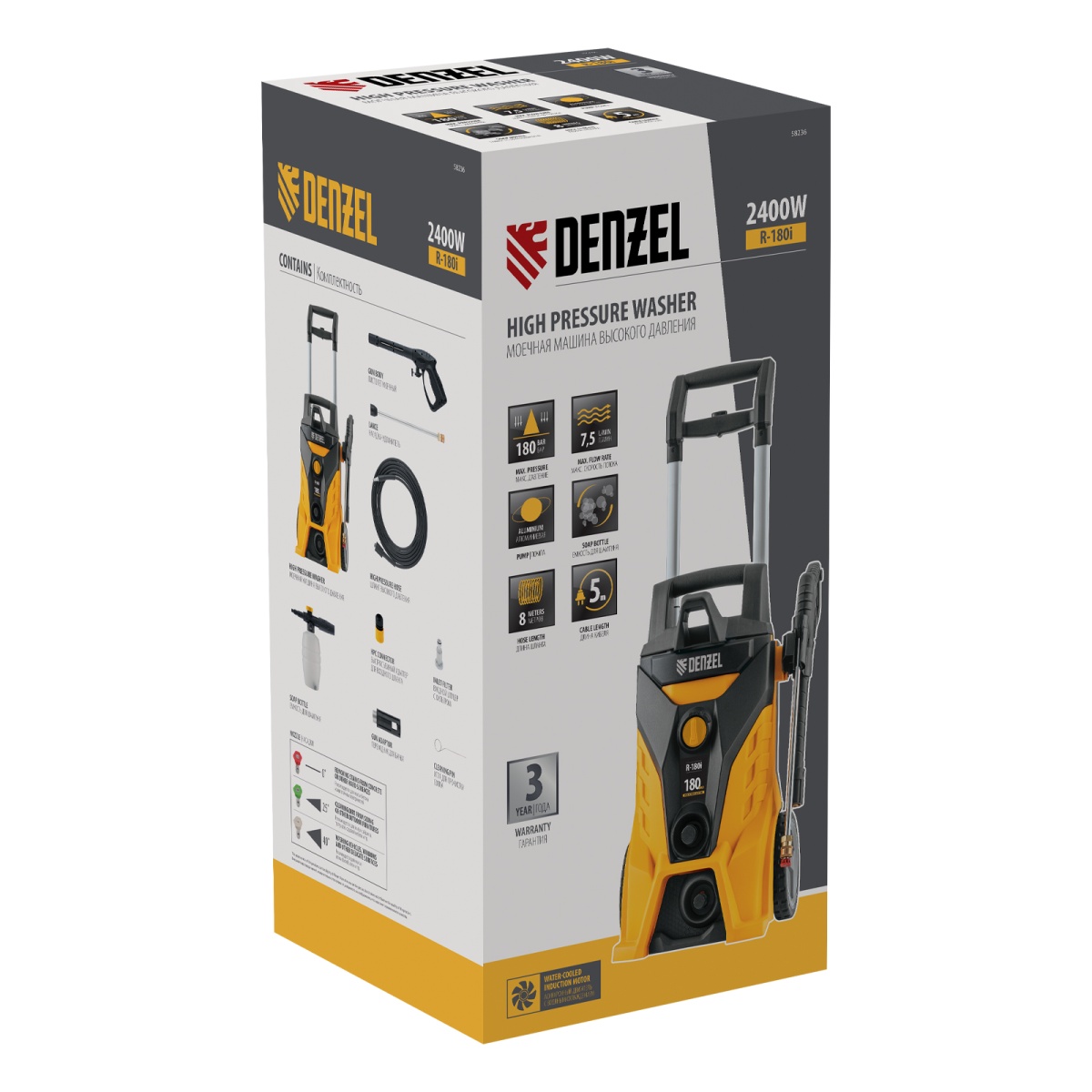 Моечная машина высокого давления R-180i, 2400 Вт, 180 бар, 7.5 л/мин, асинхронный двигатель Denzel