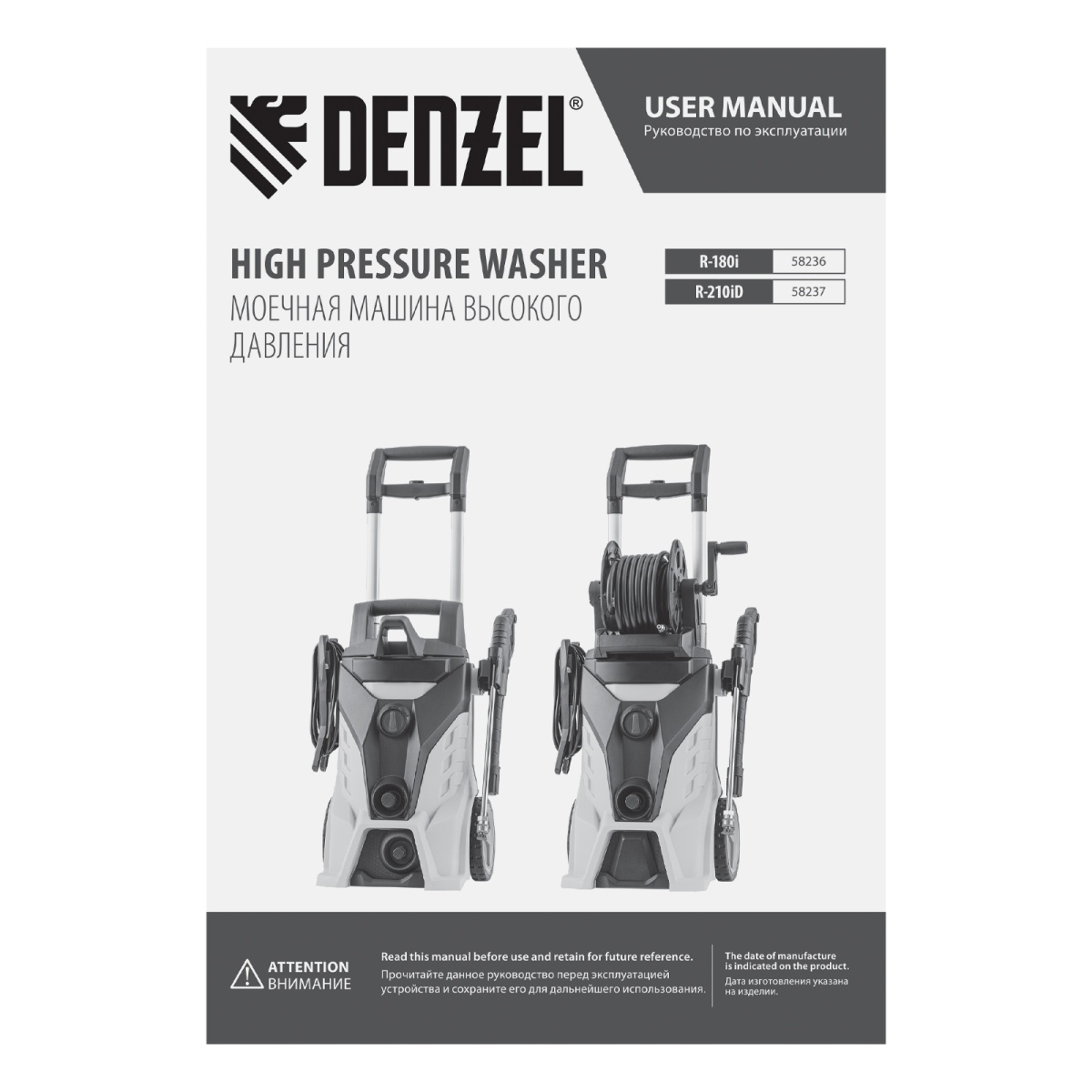 Купить Моечная машина высокого давления R-180i, 2400 Вт, 180 бар, 7.5 л/мин, асинхронный двигатель Denzel V3988 по лучшей цене с доставкой - интернет магазин №1 в России